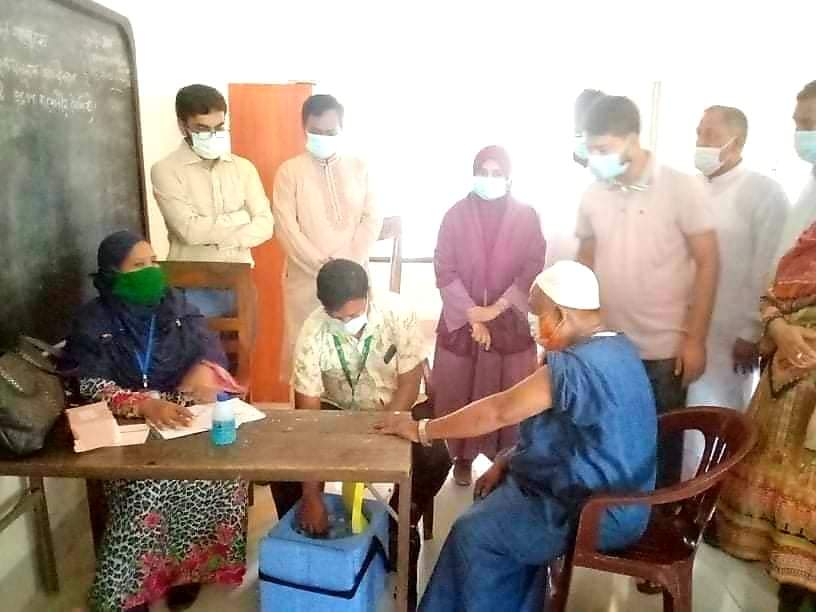 চাঁদপুরের মতলব দক্ষিণের ৮টি টিকা কেন্দ্রে ৪ হাজার ৮শ জনকে করোনা টিকা প্রদান করা হয়েছে। ৭ আগস্ট শনিবার টিকা কেন্দ্র পরিদর্শন করেছেন উপজেলা চেয়ারম্যান বিএইচএম কবির আহমেদ, উপজেলা নির্বাহী কর্মকর্তা (ইউএনও) ফাহমিদা হক, মতলব পৌরসভার মেয়র আওলাদ হোসেন লিটন, উপজেলা মহিলা ভাইস চেয়ারম্যান ফেরদৌসী বেগম রুনু। এ সময় সঙ্গে ছিলেন উপজেলা স্বাস্থ্য পরিবার পরিকল্পনা কর্মকর্তা ডা. গোলাম কাওসার হিমেল, মতলব দক্ষিণ থানার অফিসার ইনচার্জ (ওসি) মোঃ মহিউদ্দিন মিয়া, উপাদী দক্ষিণ ইউপি চেয়ারম্যান গোলাম মোস্তফা, উপজেলা আওয়ামী লীগ নেতা এম.এ আজিজ বাবুল, তোফাজ্জল হোসেন, খাদেরগাঁও ইউপি চেয়ারম্যান সৈয়দ মঞ্জুর হোসেন রিপন মীর, নায়েরগাঁও দক্ষিণ ইউপি চেয়ারম্যান আঃ আল মামুন, নায়েরগাঁও উত্তর ইউপি চেয়ারম্যান মিজানুর রহমান সেলিম, নারায়নপুর ইউপি চেয়ারম্যান জহিরুল মোস্তফা তালুকদার, উপাদী উত্তর ইউপি চেয়ারম্যান মোঃ শহীদ উল্লাহ প্রধান, রোটারী ক্লাব মতলবের প্রেসিডেন্ট রোটাঃ শ্যামল চন্দ্র দাসসহ অন্যান্য নেতৃবৃন্দ। সকাল ৯টা থেকে দুপুর ২টা পর্যন্ত টিকা দেয়া হয়। উপজেলা নির্বাহী কর্মকর্তা (ইউএনও) ফাহমিদ হক জানান, টিকা গ্রহণকারীদের মধ্যে মুক্তিযোদ্ধা, বয়ষ্ক, বিধবা, প্রতিবন্ধীরা ছিল। প্রধামন্ত্রীর প্রতিশ্রæতি অনুযায়ী ধাপে ধাপে সকলকেই টিকা প্রদান করা হবে। উপজেলা স্বাস্থ্য পরিবার পরিকল্পনা কর্মকর্তা ডাঃ গোলাম কাওসার হিমেল জানান, একটি পৌরসভা ও ছয়টি ইউনিয়নে মোট ৮টি টিকা কেন্দ্রে ৪৮০০জনকে স্বাস্থ্যবিধি মেনে টিকা প্রদান করা হয়েছে। পর্যায়ক্রমে সকলকেই টিকা প্রদান করা হবে।