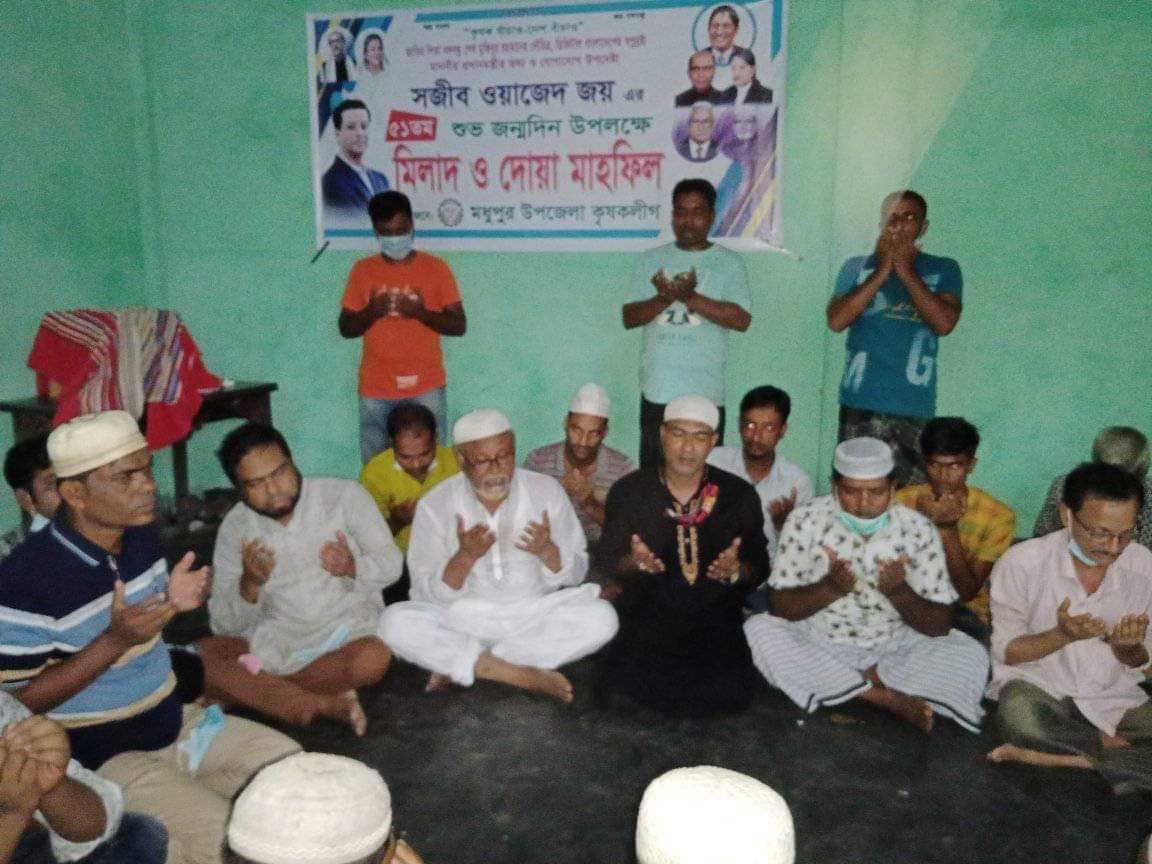 সজীব ওয়াজেদ জয় এর ৫১ তম শুভ জন্ম দিন উপলক্ষে মঙ্গলবার (২৭ জুলাই) সন্ধায় কৃষক বাচাঁও- দেশ বাচাঁও- এ প্রতিপাদ্যকে সামনে রেখে মধুপুর উপজেলা কৃষক লীগের আয়োজনে আলোচনা সভা -কেক কাটা, মিলাদ, ও দোয়া মাহফিল অনুষ্ঠিত হয়।