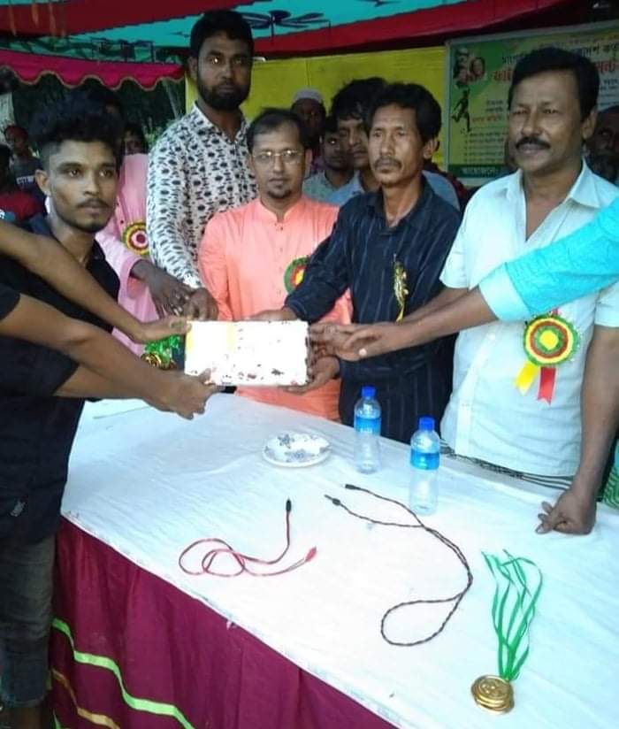 খেলা শেষে বিজয়ীদের মধ্যে পুরস্কার তুলে দেন প্রধান অতিথি মোঃ আমান উল্লাহ্ মাষ্টার।