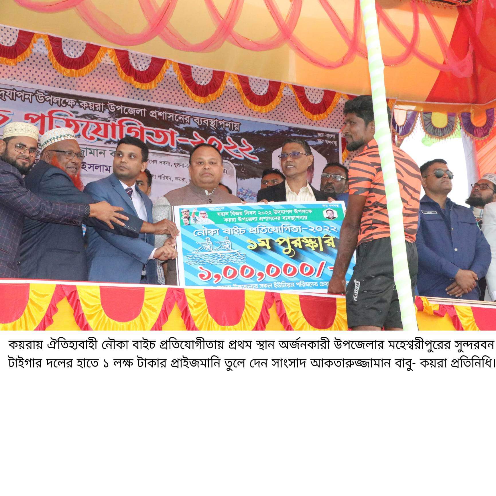 এসময় সাংসদ আলহাজ্ব আকতারুজ্জামান বাবু বলেন, দেশের বিভিন্ন জেলা বা বিভাগে সুনাম অর্জন করে গ্রাম বাংলার ঐতিহ্য ধরে রেখেছে কয়রার সুন্দরবন টাইগার নৌকা। আর নৌকা বাইচ খেলা দেখতে আসা লোকজনের উপস্থিতি এবং তাদের আনন্দ উপভোগ আমাদেরকে অনুপ্রাণিত করেছে। তিনি বলেন, নদীমাতৃক বাংলাদেশের ইতিহাস, ঐতিহ্য ও সংস্কৃতিসহ সব আনন্দ আয়োজনেরই নদী ও নৌকার সরব আনাগোনা। আর হাজার বছরের ঐতিহ্য ও সংস্কৃতির সংস্করন গ্রামীন জনপদের নৌকা বাইচ খেলা। কালের বিবর্তন ও আধুনিকায়নে হারিয়ে যাওয়ার উপক্রম এই খেলাটির। তাই আবহমান বাংলার প্রাচীন ঐতিহ্য টিকিয়ে রাখতেই আজকের এই প্রতিযোগীতার আয়োজন।