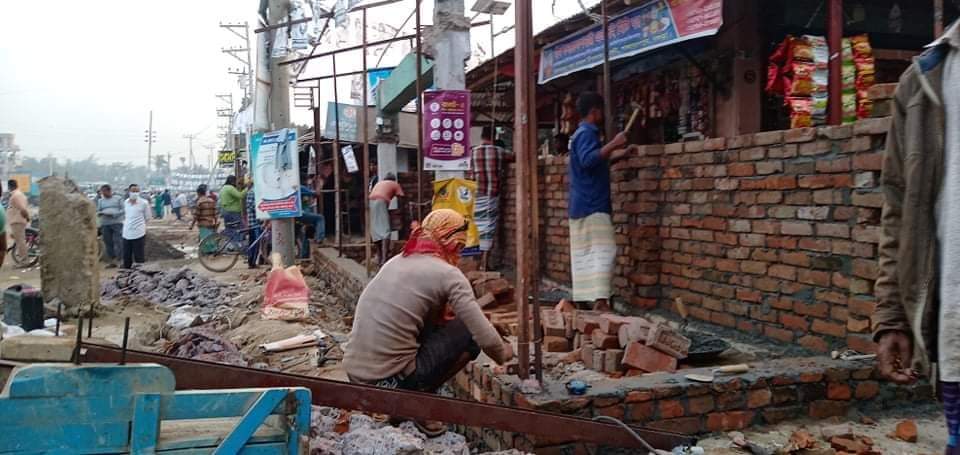 এবিষয়ে দোকান নির্মানকারি আবু সাইদ বলেন, আমার জমিতে আমি দোকান নির্মান করছি। সরকার থেকে এখনও দশমিক দুই শতাংশ জমির টাকা পাইনি তাই ঘর নির্মান করেছি।