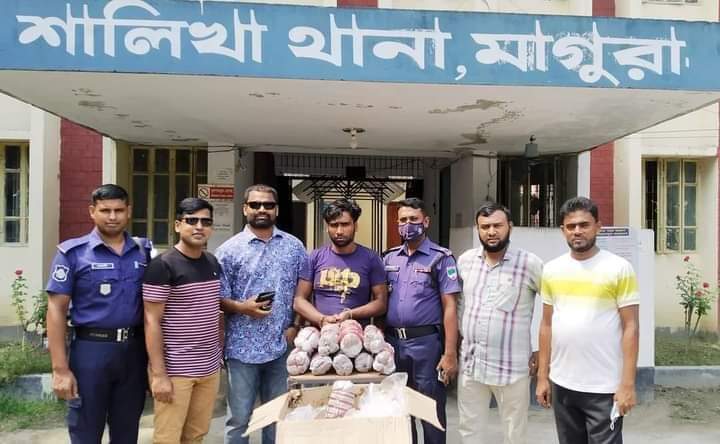 শালিখা থানা পুলিশ গোপন সংবাদ পেয়ে উপজেলার তালখড়ি ইউনিয়নের দীঘলগ্রাম থেকে ১০ কেজি গাঁজাসহ ১ জনকে আটক করেছে। এ ব্যাপারে শালিখা থানার অফিসার ইনচার্জ তারক বিশ্বাস জানান, গতকাল সোমবার রাত সাড়ে ৮টার দিকে গোপন সংবাদে জানতে পারলাম যে, দীগলগ্রামে গাঁজা বেচাকেনা হচ্ছে। এই খবর পেয়ে আমি নিজেই একটি টিম নিয়ে দীঘলগ্রামে অভিযান পরিচালনা করে এক ব্যক্তিকে ১০ কেজি গাঁজাসহ আটক করি।এসময় আরো দুজন পালিয়ে যান। আটককৃত ব্যক্তি হলেন দীঘল গ্রামের নারায়ণ মন্ডলের ছেলে দেবাশীষ মন্ডল (২৪)। পালিয়ে যাওয়া ব্যক্তিরা হলেন আবদুল হামিদ মণ্ডলের ছেলে উজ্জল মন্ডল (৩৬) এবং একই গ্রামের সাদেক মোল্লার ছেলে লুৎফর (৩৭)। এ ব্যাপারে শালিখা থানায় মাদক নিয়ন্ত্রণ আইনে একটি মামলা হয়েছে বলে জানান তিনি। উল্লেখ উজ্জ্বল শালিখা থানার একজন তালিকা ভুক্ত মাদক ব্যবসায়ী।তার বিরুদ্ধে আগে একাধিক মামলা রয়েছে। ইতিপূর্বে সে একাধিক বার গ্রেফতার হয়েছে। তবে জামিনে এসেই সে এই ব্যবসায় নেমে পড়ে।