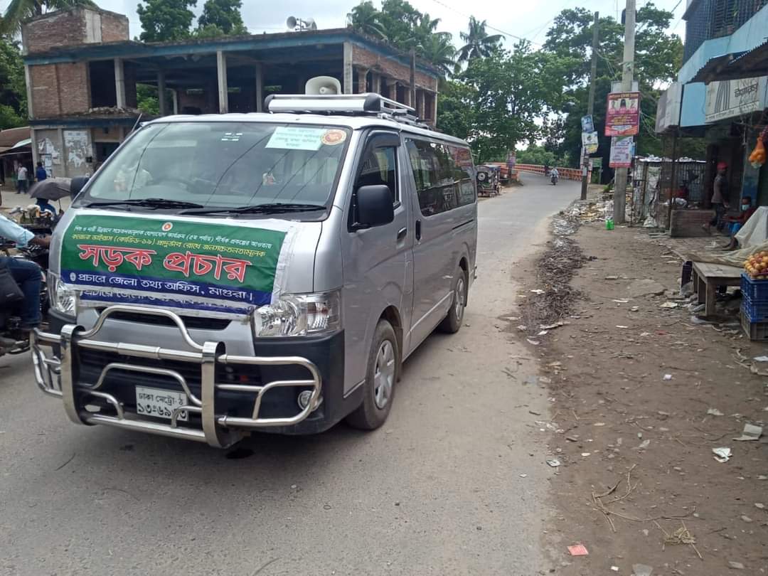 মাগুরা জেলা তথ্য অফিস কর্তৃক আজ সকাল হতে "শিশু ও নারী উন্নয়নে সচেতনতামূলক যোগাযোগ কার্যক্রম (৫ম পর্যায়)" শীর্ষক প্রকল্পের C4D খাতের আওতায় করোনাভাইরাস সংক্রমণ ঝুঁকি রোধে গণসচেতনতা সৃষ্টির লক্ষ্যে মাস্ক পরিধান ও স্বাস্থ্য বার্তা প্রচার এবং ২৩ জুলাই হতে ৫ আগস্ট ২০২১ মধ্যরাত পর্যন্ত সরকার কর্তৃক জারীকৃত সার্বিক চলাচলে বিধিনিষেধ সংক্রান্ত গণবিজ্ঞপ্তি মহম্মদপুর উপজেলার বিনোদপুর, দিঘা, মহম্মদপুর, বালিদিয়া ও রাজাপুর ইউনিয়নের বিভিন্ন গুরুত্বপূর্ণ জনবহুল স্থান ও হাট বাজারে সড়ক প্রচার করা হচ্ছে।