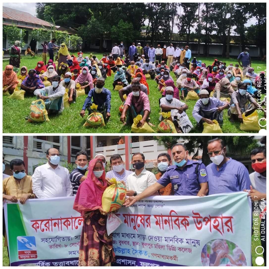 মানবিক মানুষের মানবিক উপহার কার্যক্রমের সমন্বয়ক গণমাধ্যমকর্মী শাহ্ নাফিউল্লাহ সৈকতের উদ্যোগে এবং উপজেলা প্রশাসনের সার্বিক তত্বাবধানে খাদ্যসামগ্রী বিতরণ অনুষ্ঠানে উপস্থিত ছিলেন ফুলপুর উপজেলা পরিষদের চেয়ারম্যান মো. আতাউল করিম রাসেল, কার্যক্রমের প্রধান তদারকি কর্মকর্তা ও ইউএনও শীতেষ চন্দ্র সরকার, তদারকি কর্মকর্তা ও পল্লী সঞ্চয় ব্যাংকের ব্যবস্থাপক আবুল বাসার রাজন, তদারকি কর্মকর্তা ও জনস্বাস্থ্য প্রকৌশলী দারুস সালাম, পৌর আওয়ামী লীগের সভাপতি খলিলুর রহমান, মহিলা ডিগ্রি কলেজের সহকারী অধ্যাপক শাফায়েত জামিল সাজু, বঙ্গমাতা শেখ ফজিলাতুন্নেছা সরকারি প্রাথমিক বিদ্যালয়ের প্রধান শিক্ষক জিয়াউর রহমান পান্না, সাংবাদিক নুরুল আমিন, বিল্লাল হোসাইন, আব্দুল মান্নান, মোস্তফা খান, আলমগীর ইসলাম, বঙ্গবন্ধু সৈনিক লীগের সভাপতি আমজাদ হোসেন, স্বেচ্ছাসেবী মাহমুদুল হাসান রাব্বি, সাখাওয়াত হোসেন, ইকবাল হাসান, ইমরান হাসান, সুজন মিয়া, আয়েশা আক্তার আশা প্রমুখ।