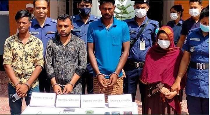 গ্রেপ্তারকৃতরা হলেন, রাজবাড়ীর মো. কবির হোসেন (৩০), মো. রিয়াজ উদ্দিন সরদার রিয়াজ (২৬), বগুড়ার শাকিল হাসান (১৯) ও বিলকিসের বান্ধুবী রংপুরের আঁখি মনি ওরফে লিপি (২০) আক্তার।