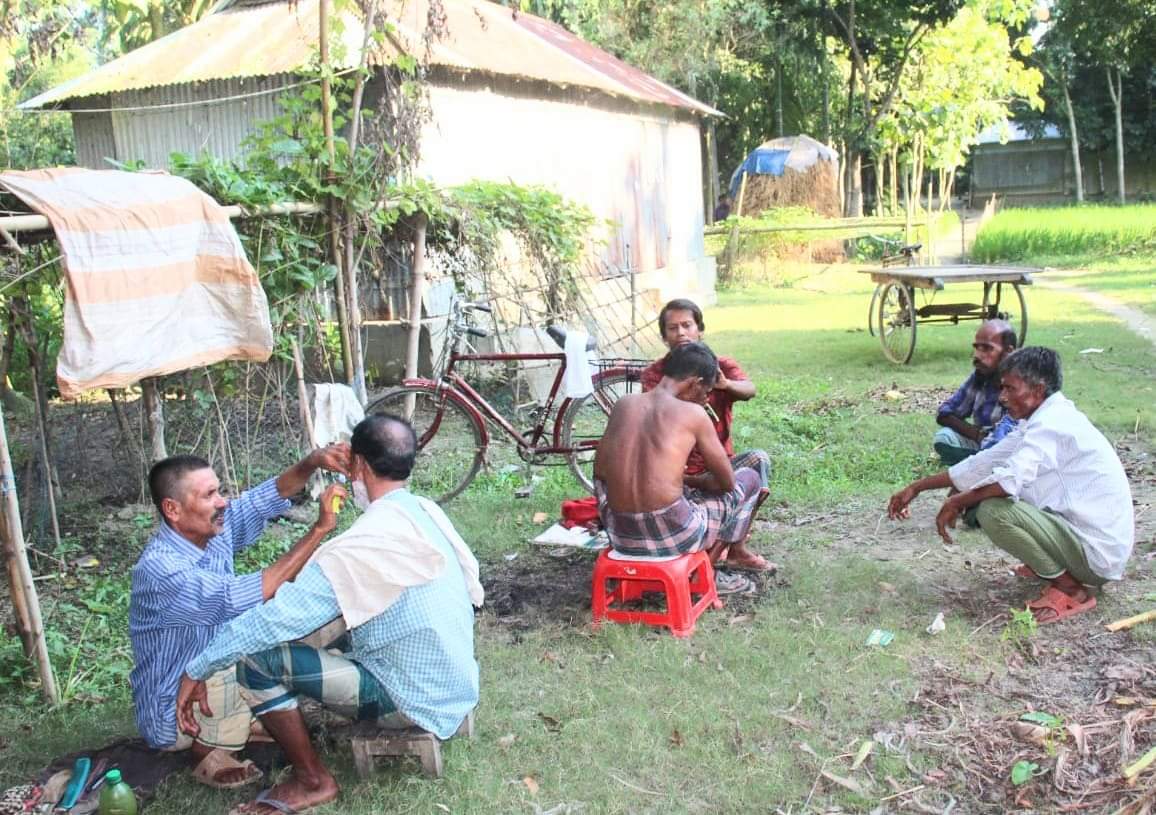 টুলে বসা আবুবক্কর গোবিন্দনগর গ্রামের বলেন, চুল কাটার জন্য এখানে এসেছি। এরা প্রতি হাটে এখানে চুল দাড়ি কাটার জন্য সেলুনের দোকান দেয়। বড় বড় সেলুনের তুলনায় এখানে অনেক কম টাকায় চুল কাটা যায়।