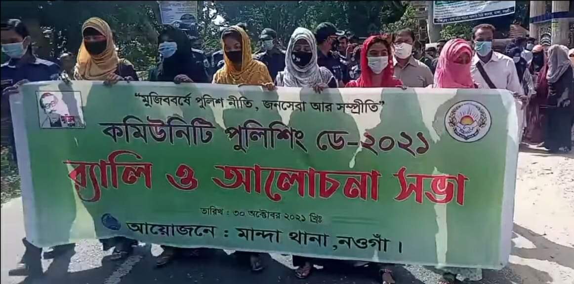মুজিববর্ষে পুলিশ নীতি, জনসেবা আর সম্প্রীতি" এই প্রতিপাদ্যকে সামনে রেখে নওগাঁর মান্দায় কমিউনিটি পুলিশিং ডে ২০২১ উপলক্ষে র্যালি ও আলোচনা সভা অনুষ্ঠিত হয়েছে।