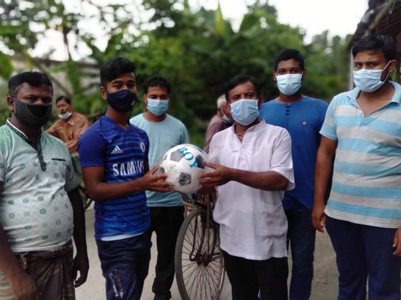 রবিবার বিকেলে কেশবপুর সদর ইউনিয়নের ৮ নং ওয়ার্ড আওয়ামী লীগের সাংগঠনিক সম্পাদক বিশিষ্ট সমাজ সেবক ও আগমী সদর ইউনিয়ন পরিষদ নির্বাচনে ৮ নং ওয়ার্ডের সম্ভাব্য মেম্বর পদপ্রার্থী মাখন লাল দাশ খতিয়াখালি মোড়ে ও মাগুরাডাঙ্গা মোড়ে তার ব্যক্তিগত ভাবে করোনা ভাইরাসা প্রতিরোধে স্বাস্থ্যবিধি মেনে সামাজিক দুরত্ব বজায় রেখে পথচারীসহ বিভিন্ন পেশার মানুষের মাঝে ১শ মাস্ক বিতরণ করেন। এর পর তিনি খতিয়াখালি গ্রামে ও মাগুরাডাঙ্গা গ্রামের শিক্ষার্থীদের মাঝে ফুটবল বিতরণ করেন।