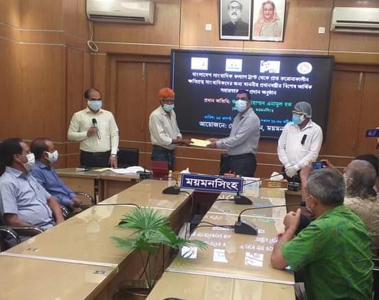 ময়মনসিংহে মাননীয় প্রধানমন্ত্রীর ঘোষিত সাংবাদিকদের আর্থিক সহায়তার চেক বিতরণ।