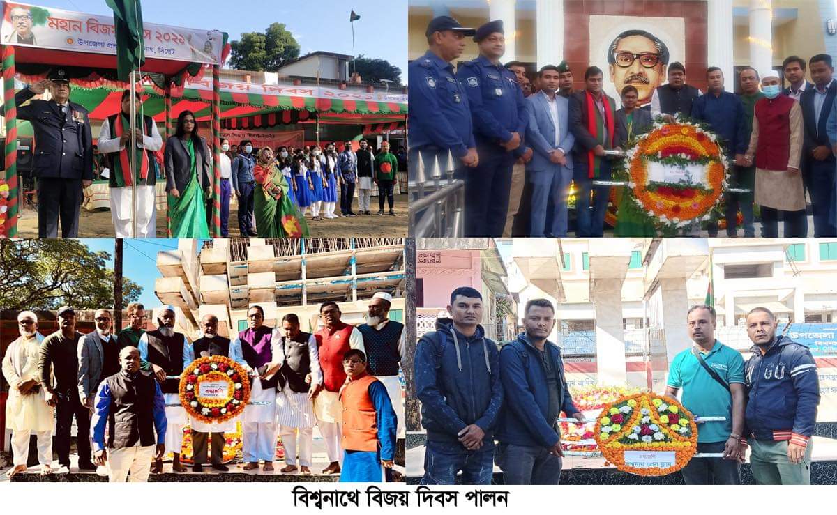 যথাযোগ্য মর্যাদায় নানান আয়োজনের মধ্য দিয়ে সিলেটের বিশ্বনাথে মহান বিজয় দিবস পালন করা হয়েছে। সূর্যোদয়ের সাথে সাথে জাতীয় পতাকা উত্তোলন ও ৫০ বার তোপধ্বনীর মাধ্যমে স্বাধীনতার সুবর্ণজয়ন্তী ও মুজিববর্ষ উদযাপনের লক্ষ্যে বিজয় দিবসের কার্যক্রম শুরু হয়। এরপর কেন্দ্রীয় স্মৃতিস্তম্ভ ও জাতির জনক বঙ্গবন্ধু শেখ মুজিবুর রহমানের মুর্যালে শহীদদের স্মরণে অর্পণ করা হয় শ্রদ্ধাঞ্জলি।