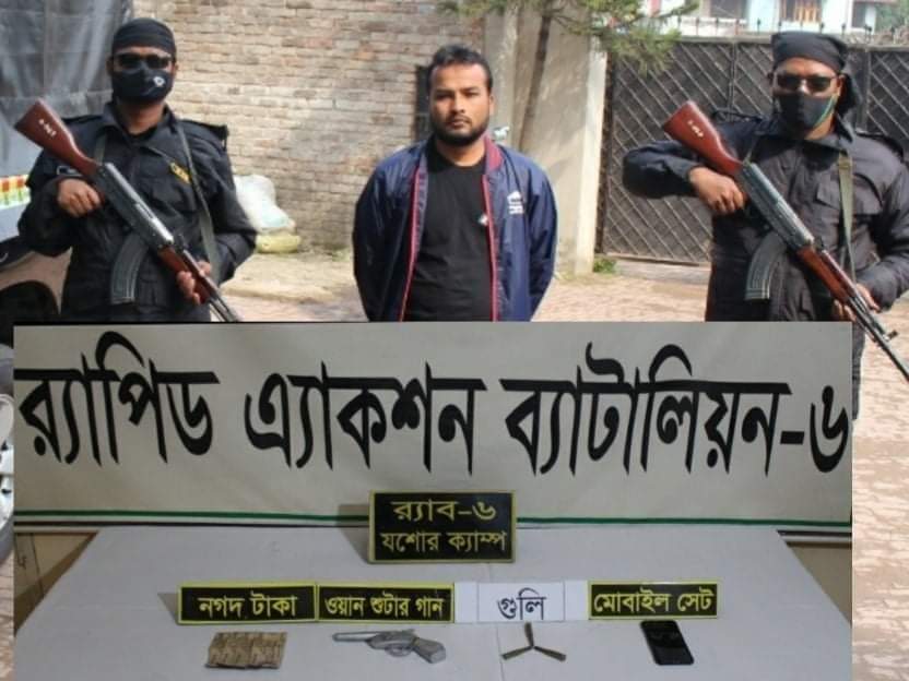 যশোর র্যাব জানান, অস্ত্র ব্যবসায়ীরা ভারত থেকে অস্ত্র এনে গোগা বাজারে কেনাবেচা করছে। এমন গোপন খবরে র্যাবের একটি টিম সেখানে অভিযান চালিয়ে একটি ওয়ান স্যুটারগান ও ৩ রাউন্ড গুলি সহ তাকে আটক করে।