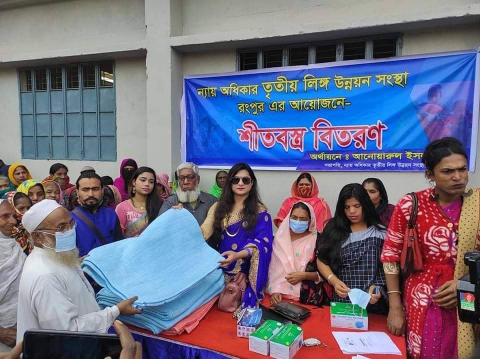 এসময়ে উপস্থিত থেকে হিজড়া সংগঠনের সভাপতি আনোয়ারুল ইসলাম (রানা) বলেন, অমি ছোটবেলা যখন নিশ্চিত হয়েছি যে, আমি একজন তৃতীয় লিঙ্গের মানুষ। আমার কখনো সংসার/সত্তান হবে না। তাই তখন থেকে আমি নিজেকে মানুষের সেবায় উৎসর্গ করে দিয়েছি। আমি ১২ বছর পূর্বে আমার মতো ৩৭০ জন সদস্যকে নিয়ে ন্যায় অধিকার তৃতীয় লিঙ্গ উন্নয়ন সংস্থা রংপুর নামে একটি সংগঠন প্রতিষ্ঠা করি। ৩৭০জন সদস্যের মধ্যে ১৫০ জনকে সমাজ সেবার মাধ্যমে বিভিন্ন ট্রেডে প্রশিক্ষন করিয়েছি। প্রশিক্ষনের পর প্রায় ২০ জন হিজড়া সদস্য ভিক্ষা বৃত্তি থেকে বেড়িয়ে কর্মমূখী হয়ে সুষ্ঠু জীবন যাপন করছে। আমি আশা করি, আমাদের সবাই একদিন ভিক্ষা বৃত্তি থেকে বেড়িয়ে কর্মমূখী হয়ে মাথা উচু করে বাঁচবে। আমি সেই লক্ষে কাজ করে যাচ্ছি।