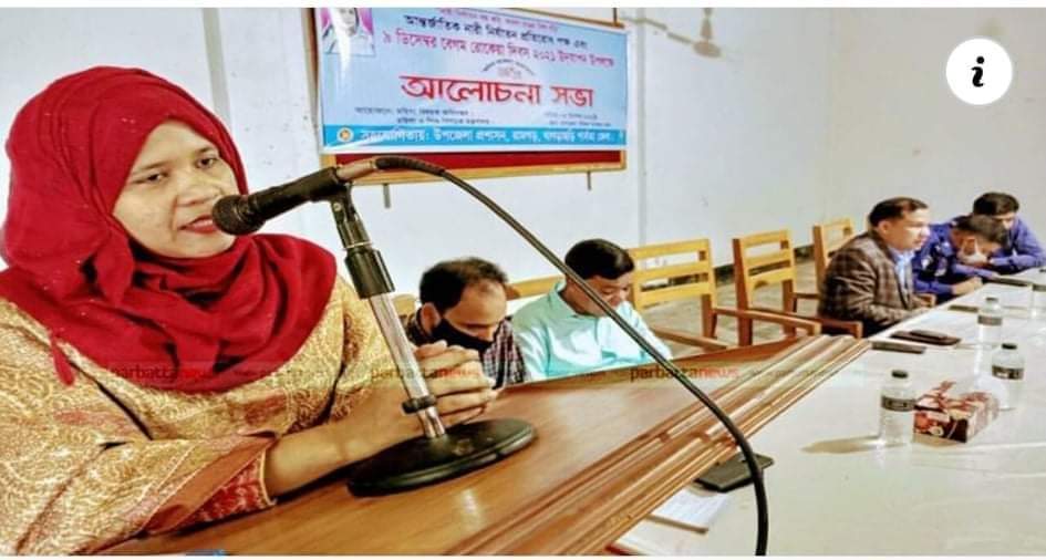 বৃহস্পতিবার (৯ ডিসেম্বর) রামগড় মহিলা বিষয়ক কার্যালয়ের আয়োজনে দিবসটি পালনে উপজেলা সম্মেলন কক্ষে আলোচনা সভা অনুষ্ঠিত হয়।রামগড় উপজেলা নির্বাহী কর্মকর্তা (ভারপ্রাপ্ত) উম্মে হাবিবা মজুমদারের সভাপতিত্বে অনুষ্ঠিত আলোচনা সভায় প্রধান অতিথি হিসেবে উপস্থিত থেকে বক্তব্য রাখেন উপজেলা চেয়ারম্যান বিশ্ব প্রদীপ কুমার কার্বারী।
