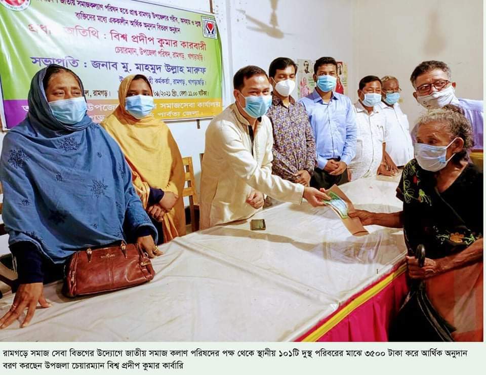খাগড়াছড়ির রামগড়ে জাতীয় সমাজ কল্যাণ পরিষদের পক্ষ থেকে উপজেলা ও শহর সমাজ সেবা অধিদপ্তরের উদ্যোগে স্থানীয় ১০১টি অসহায় দুঃস্থ পরিবারকে আর্থিক অনুদান দেওয়া হয়েছে।