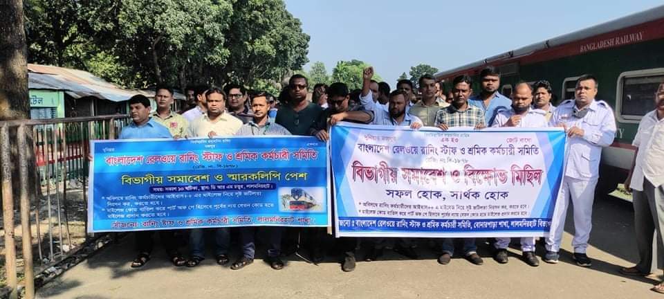 রেলওয়ের আইবাস সিস্টেম জটিলতার বিরুদ্ধে আন্দোলনে নেমেছে ট্রেনচালক, সহকারি চালক, ট্রেন পরিচালক ও টিটিই। সংকট নিরসনের দাবীতে তারা লালমনিরহাট রেলওয়ের রানিং স্টাফ ও শ্রমিক কর্মচারী সমিতির ব্যানারে রোববার (৩১ অক্টোবর) সকালে বিক্ষোভ মিছিল ও সমাবেশ করে। বিক্ষোভ মিছিল শেষে লালমনিরহাট রেলওয়ে বিভাগীয় কার্যালয়ে সামনে সমাবেশ করে তারা। সমাবেশে নতুন মাইলেজ কোড বাতিল করে পার্ট অফ পে হিসেবে পূর্বের ন্যায় বেতন কোড হতে মাইলেজ প্রদানের জন্য কর্তৃপক্ষের কাছে দাবী জানানো হয়। অনথ্যায় রেল চলাচল বন্ধ সহ বৃহত্তর আন্দোলনের হুমকিও দেন তারা। সমাবেশ শেষে বিভাগীয় যান্ত্রিক প্রকৌশলী রাসেল আলমের মাধ্যমে রেলওয়ের লালমনিরহাট বিভাগীয় ব্যবস্থাপক শাহ সুফী নুর মোহাম্মদের কাছে স্মারকলিপি প্রদান করা হয়।