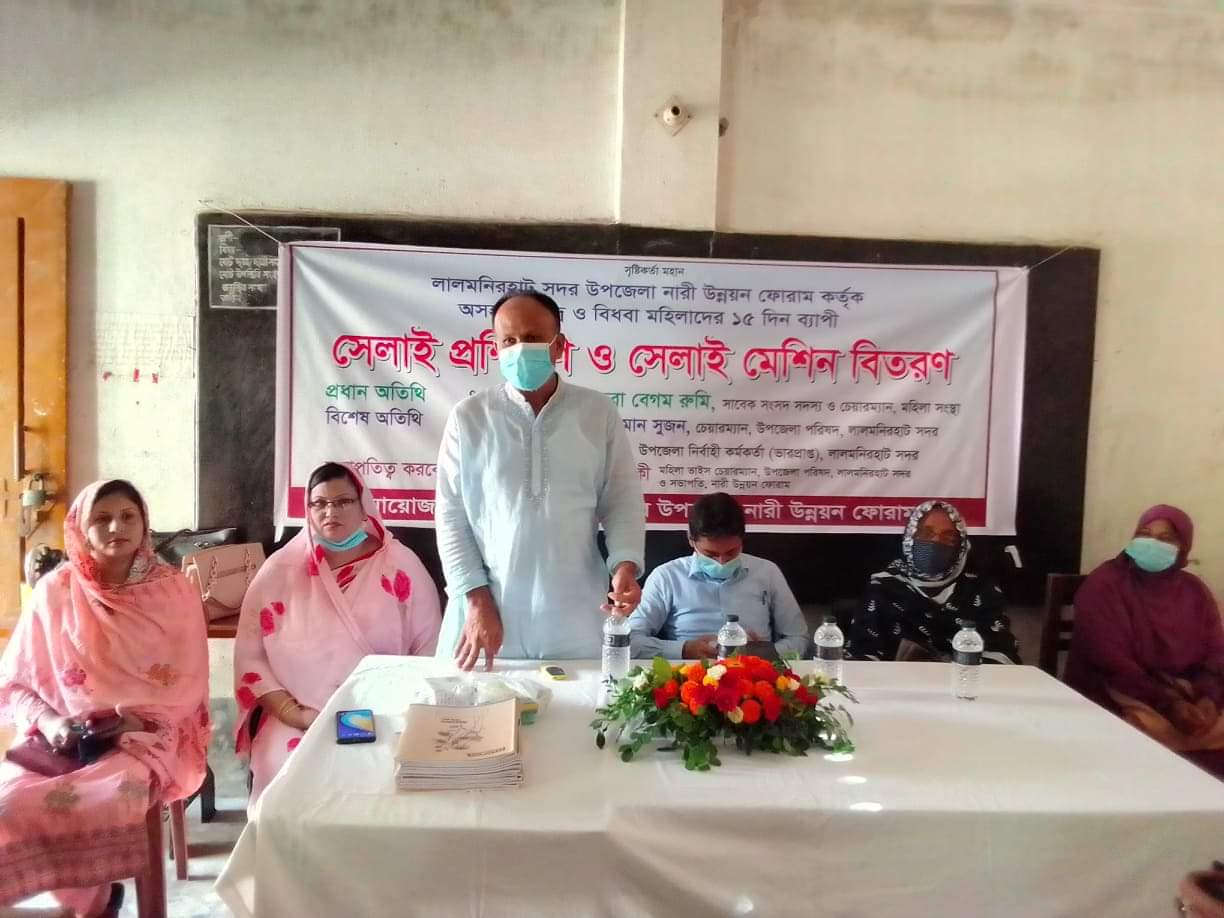 মঙ্গলবার (৭ সেপ্টেম্বর) বিকাল ৩টায় শিশু কল্যাণ প্রাথমিক বিদ্যালয়ের হলরুমে লালমনিরহাট সদর উপজেলা নারী উন্নয়ন ফোরামের আয়োজনে লালমনিরহাট সদর উপজেলা নারী উন্নয়ন ফোরাম কর্তৃক অসহায় দরিদ্র ও বিধবা মহিলাদের ১৫দিন ব্যাপী সেলাই প্রশিক্ষণ ও সেলাই মেশিন বিতরণ অনুষ্ঠিত হয়।