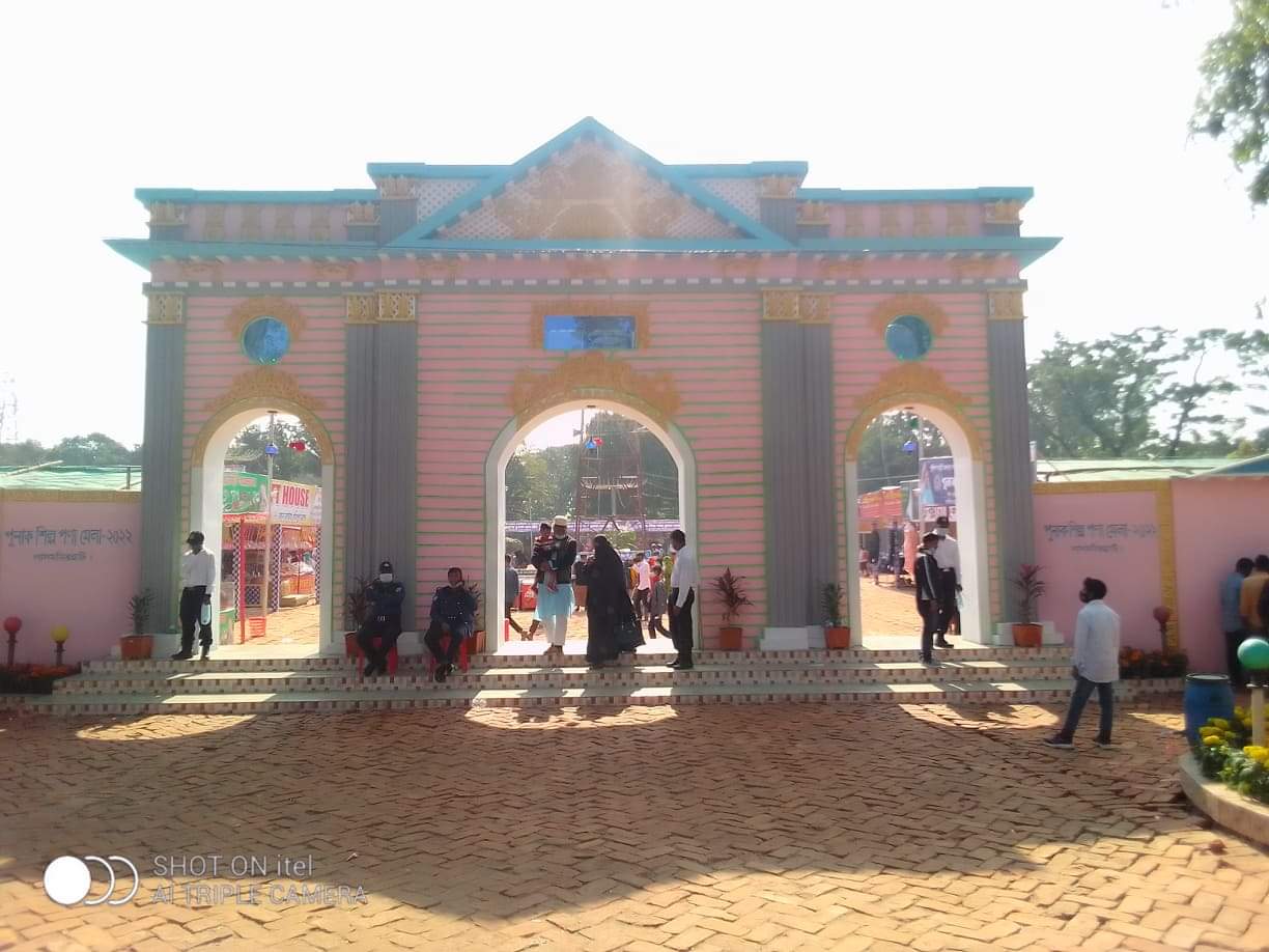 সরেজমিন ঘুরে দেখা গেছে, মাঠের সিংহভাগ অংশজুড়ে প্যান্ডেল তৈরি করা হয়েছে। প্যান্ডেলের চারপাশ টিন দিয়ে ঘিরে স্টল বানানো হয়েছে। মাঠের ভেতরেও আছে বেশ কিছু স্টল। মাঠের একদিকে চরকি, দোলনা, নাগরদোলা, মটর সাইকেলসহ নানা রাইড স্থাপন করা হয়েছে। মেলার প্রবেশমুখে ইট দিয়ে স্থায়ী অবকাঠামোর মতো স্থাপনা নির্মাণ করা হয়েছে।