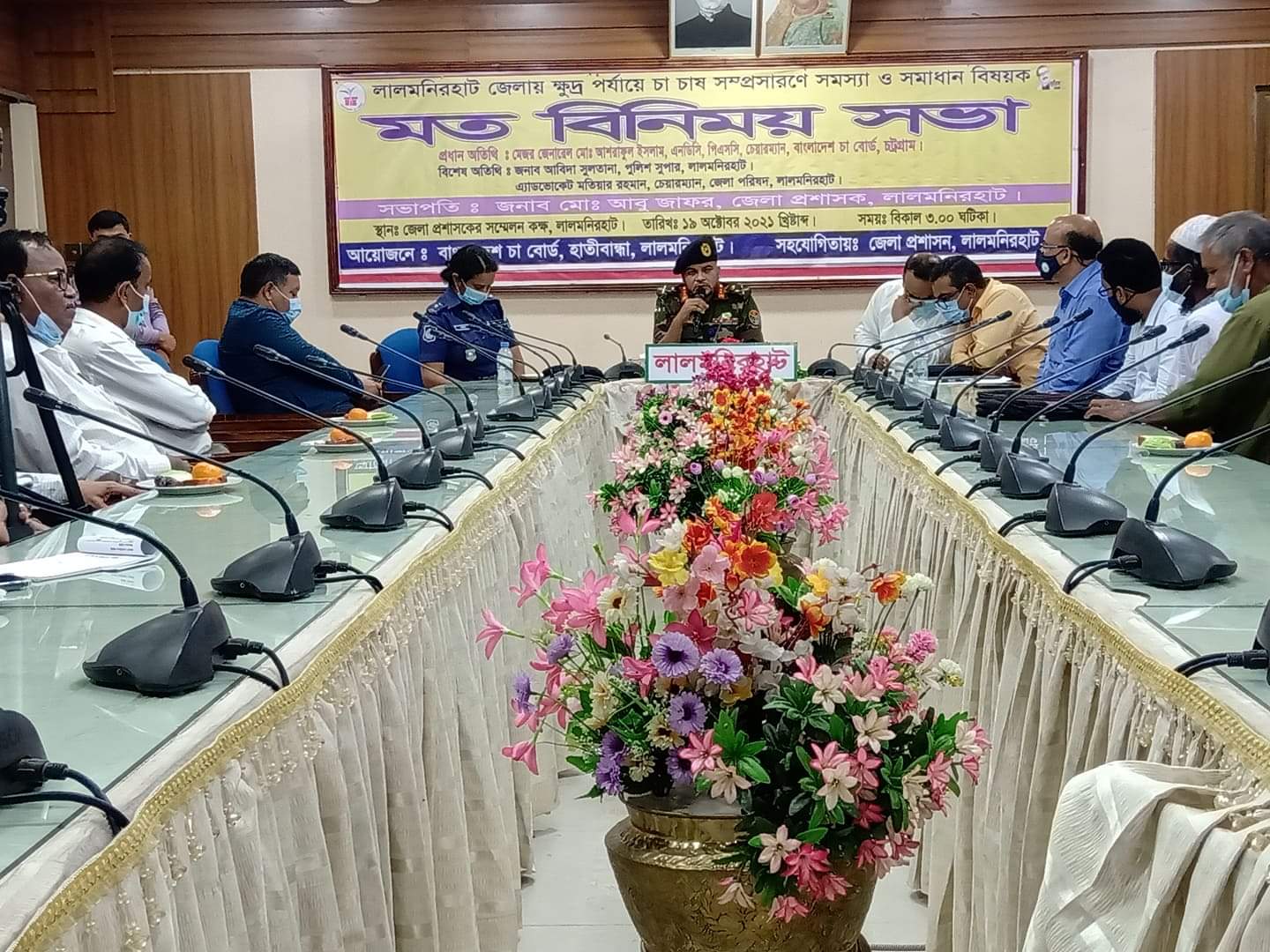 বাংলাদেশ চা বোর্ড লালমনিরহাটের উদ্যোগে এবং লালমনিরহাট জেলা প্রশাসক আবু জাফরের সভাপতিত্বে অনুষ্ঠিত এ মতবিনিময় সভায় প্রধান অতিথি হিসেবে উপস্থিত থেকে বক্তব্য রাখেন বাংলাদেশ চা বোর্ডের চেয়ারম্যান মেজর জেনারেল মোঃ আশরাফুল ইসলাম এনডিসি, পিএসসি।