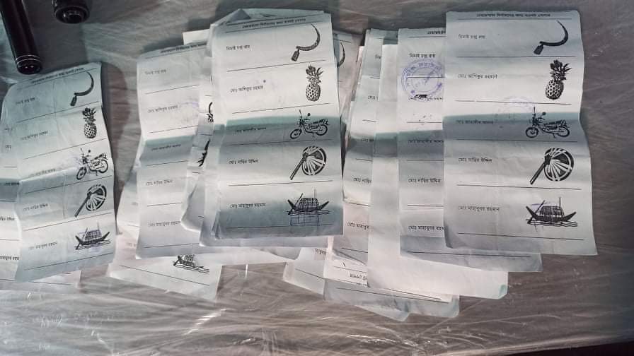 লালমনিরহাট জেলার কালীগঞ্জে বিএনপি নেতার হাতে নৌকায় সিল দেয়া ভুয়া ব্যালটগুলো নিয়ে উভয় পক্ষের রশি টানাটানি বিএনপি নেতার হাতে নৌকায় সিল দেয়া ভুয়া ব্যালটগুলো। সকলের প্রশ্ন এখন- টয়লেটে কে রাখলো এসব ব্যালট?