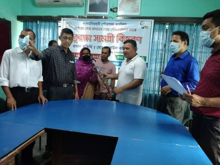 লালমনিরহাট পৌরসভা কার্যালয় সর্বোত্তম সেবা প্রদানের লক্ষে পৌরকর্মীদের মাঝে সুরক্ষা সামগ্রী বিতরণ করা হয়েছে।