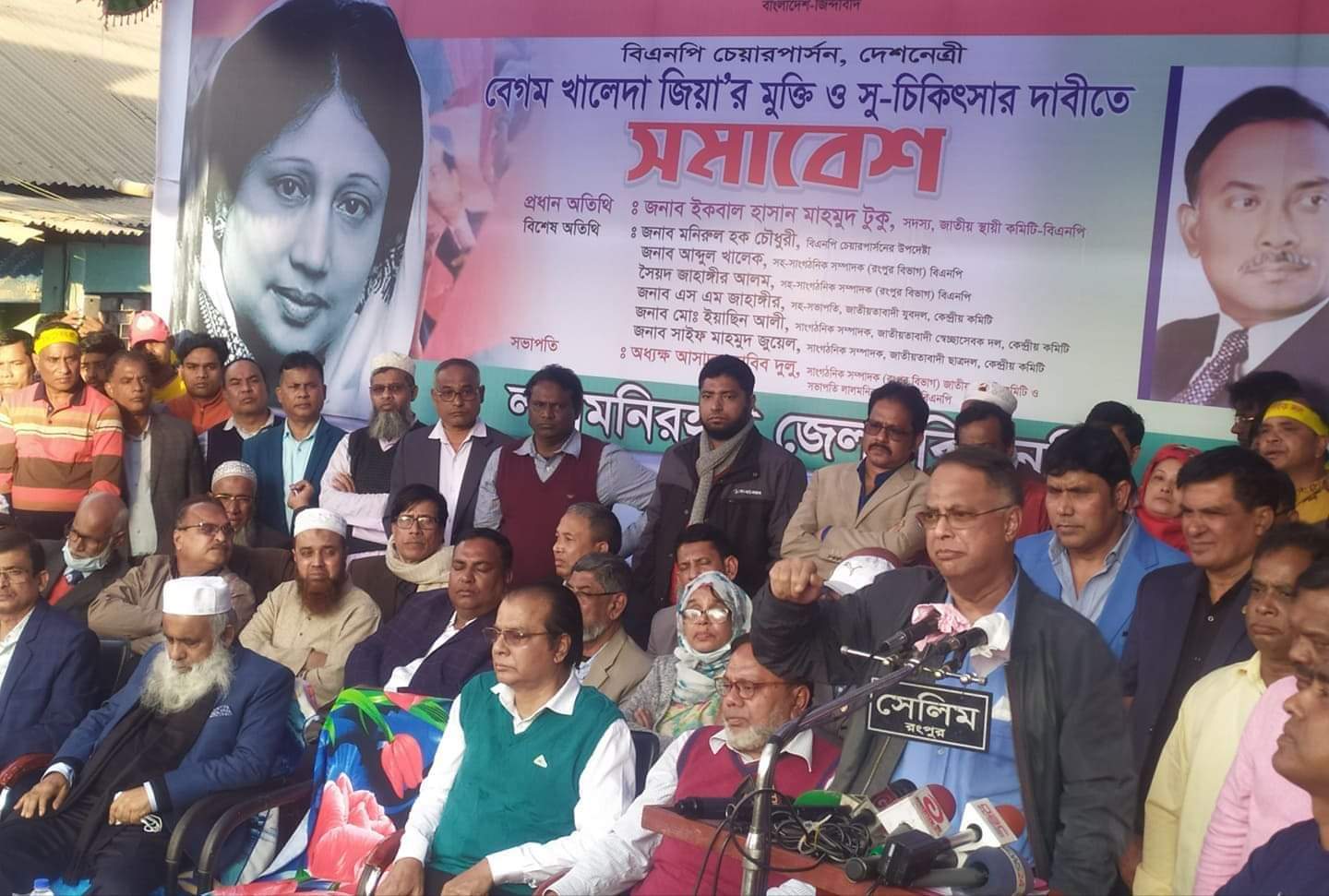 বেগম খালেদা জিয়া'র মুক্তি ও সু-চিকিৎসার দাবীতে লালমনিরহাট জেলা-বিএনপি আয়োজিত এক সমাবেশে মঙ্গলবার (২৮ ডিসেম্বর) বিকেলে এসব কথা বলেন তিনি। লালমনিরহাট জেলা শহরের আলোরুপা মোড়ের দলীয় কার্যালয়ের সংলগ্ন লালমনিরহাট প্রেসক্লাবের সামনের সড়কে এ সমাবেশ অনুষ্ঠিত হয়।