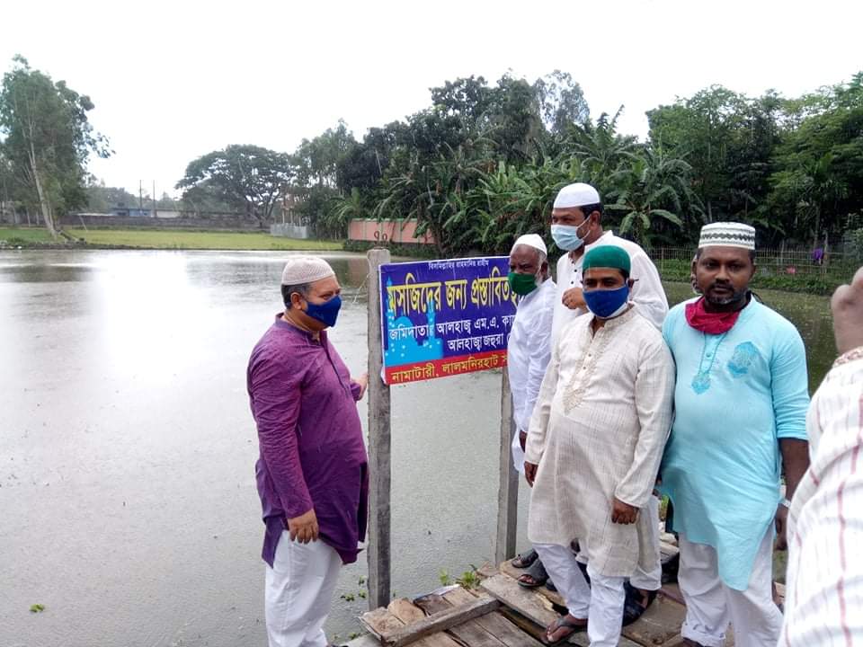 মসজিদের জন্য প্রস্তাবিতস্থান এর শুভ উদ্বোধন করেন লালমনিরহাট পৌরসভার মেয়র রেজাউল করিম স্বপন। এ সময় লালমনিরহাট পৌরসভার ৭নং ওয়ার্ডের কাউন্সিলর সোহেল রানা, ৯নং ওয়ার্ডের কাউন্সিলর রবিউল ইসলাম, জমিদাতা আলহাজ্ব এম. এ. কাশেমসহ অন্যান্য ব্যক্তিবর্গ উপস্থিত ছিলেন।