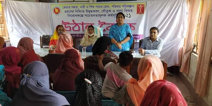 জেন্ডার সমতা, নারী ও শিশু পাচার রোধ, পরিবার পরিকল্পনা গ্রহণের নিমিত্তে উদ্বুদ্ধকরণ, যৌতুক ও বাল্য বিবাহ নিরোধ কল্পে সচেতনতা মূলক কর্মসূচি-২০২১ উঠান বৈঠক অনুষ্ঠিত হয়।