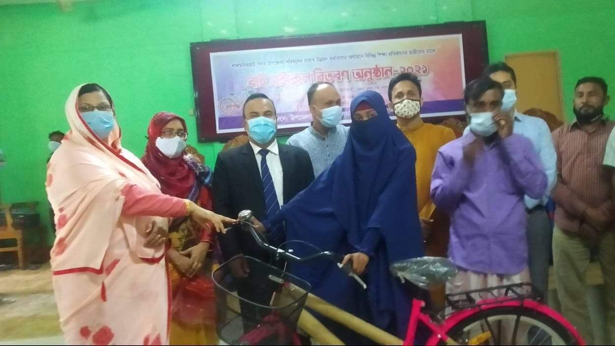 লালমনিরহাট সদর উপজেলা পরিষদের রাজস্ব উন্নয়ন তহবিলের অর্থায়নে উপজেলার বিভিন্ন শিক্ষা প্রতিষ্ঠানের ১শত ২০জন ছাত্রীর মাঝে বাইসাইকেল বিতরণ করা হয়েছে।