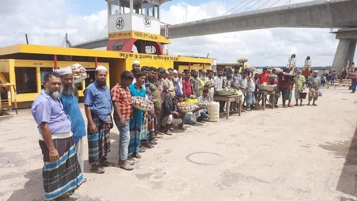 পটুয়াখালীর লেবুখালী ফেরিঘাটে হকারদের পুনবার্সনে জন্য মানববন্ধন