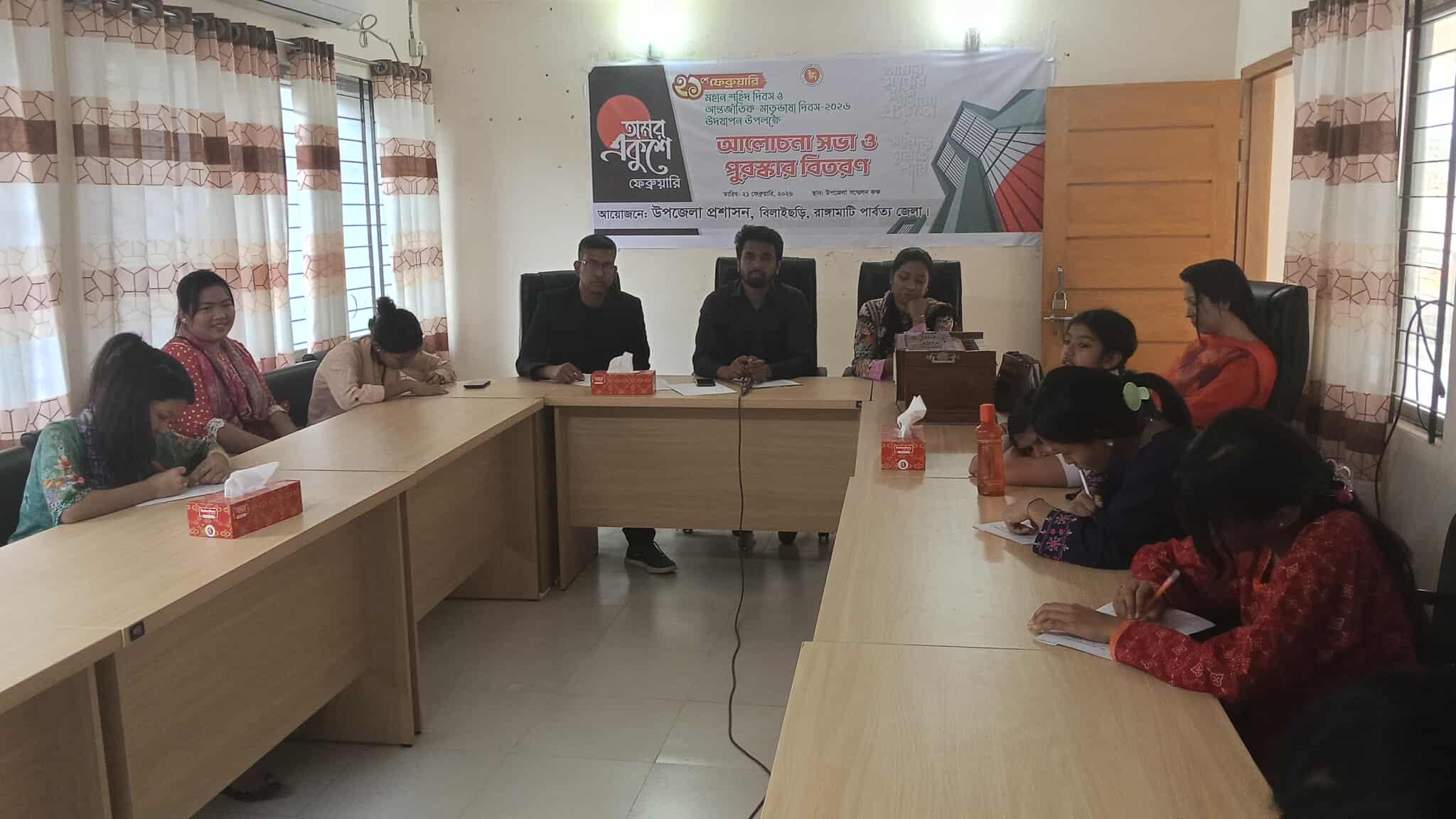 তিনি শুক্রবার (২০ ফেব্রুয়ারি) দুপুরে উপজেলা কনফারেন্স রুমে কুইজ ও কবিতা আবৃত্তি, মিলনায়তনে ৫২ সালে ভাষা আন্দোলনের শহীদের শহিদ মিনার এবং শহিদের বিভিন্ন স্মৃতি ক্ষুদে শিল্পীদের নিখুঁত ভাবে রংতুলি আঁকা দেখে মুগ্ধ হন। এসময় উপস্থিত ছিলেন উপজেলার প্রানী সম্পদ কর্মকর্তা ডা.মোহাম্মদ গোলাম আজম, উপ-সহকারী কৃষি কর্মকর্তা রুবেল বড়ুয়া, বিলাইছড়ি কলেজের প্রভাষক ইয়াসমিন সুলতানা মনি, কেরনছড়ি সরকারি প্রাথমিক বিদ্যালয়ের প্রধান শিক্ষক পুতুল চন্দ্র তঞ্চঙ্গ্যাসহ বিভিন্ন প্রাথমিক ও উচ্চ বিদ্যালয়ের শিক্ষক- শিক্ষিকা । ২১ শে ফেব্রুয়ারি শহিদ দিবস ও আন্তর্জাতিক মাতৃভাষা দিবস উপলক্ষে উপজেলা প্রশাসনের আয়োজনে এই প্রতিযোগিতা অনুষ্ঠিত হয়েছে।