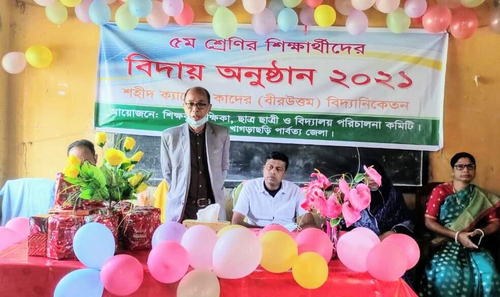 বিদ্যালয় পরিচালনা পরিষদের সভাপতি ও খাগড়াছড়ি পার্বত্য জেলা পরিষদের সাবেক সদস্য মংপ্রু চৌধুরীর সভাপতিত্বে বিদায় অনুষ্ঠানে বক্তব্য দেন,পরিচালনা পরিষদের সহ সভাপতি সাংবাদিক নিজাম উদ্দিন লাভলু, স্কুলের প্রধান শিক্ষিকা ফেরদৌস আরা বেগম, শিক্ষক উসিং মার্মা, অভিভাবক সীমা চৌধুরী। অনুষ্ঠান পরিচালনা করেন শিক্ষক মোঃ আনিসুর রহমান।
