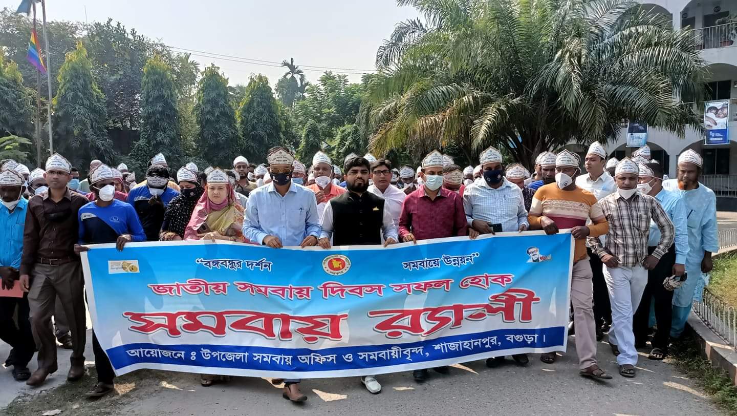 "বঙ্গবন্ধুর দর্শন, সমবায়ে উন্নয়ন" প্রতিপাদ্য বিষয়ের আলোকে বগুড়ার শাজাহানপুরে জাতীয় সমবায় দিবস ২০২১ উপলক্ষে জাতীয় পতাকা উত্তোলন, র্যালী, পুরস্কার বিতরণ ও আলোচনা সভা অনুষ্ঠিত হয়েছে।