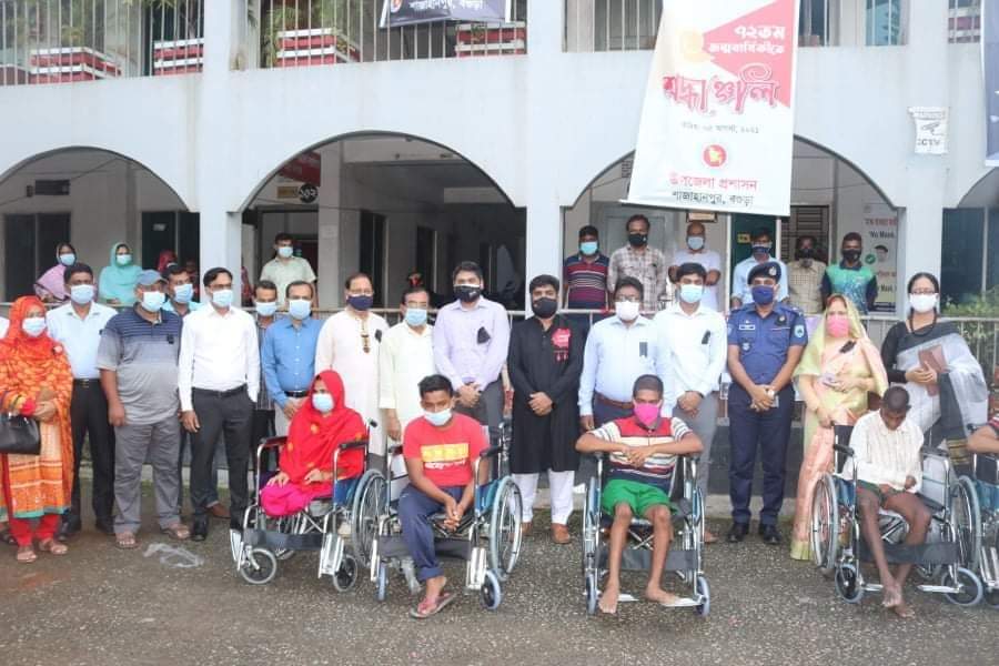 বগুড়ার শাজাহানপুরে বঙ্গমাতা বেগম ফজিলাতুন নেছা মুজিবের ৯১তম জন্মবার্ষিকী উপলক্ষে সমাজের সুবিধাবঞ্চিত মানুষের মাঝে হুইলচেয়ার, সেলাই মেশিন, শিশুখাদ্য ও আর্থিক সহায়তা প্রদান করেছেন উপজেলা প্রশাসন।