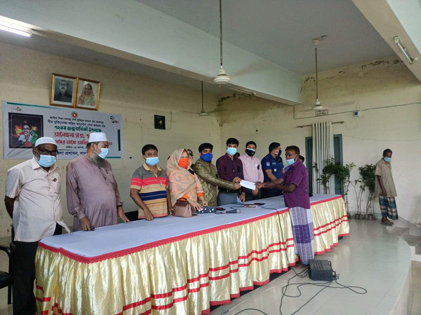 পরে ১৫টি পরিবারের দুস্থদের মাঝে নগদ ১০ হাজার টাকা করে আর্থিক সহায়তা এবং ২৫টি বিদ্যালয়ের শিক্ষক প্রতিনিধিগণের হাতে গাছের চারা বিতরণ করা হয়েছে।