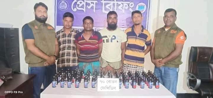 ডিবি জানায়,মাদক পাচারের গোপন খরবে জেলা গোয়েন্দা শাখা যশোরের এসআই আরিফুল ইসলাম, এসআই রইচ আহমেদ, এএসআই নির্মল কুমার ঘোষদের সমন্বয়ে একটি চৌকস টিম শার্শা থানাধীন পাঁচভুলাট সাকিনস্থ খলসীবাজার টু গোগা গামী রাস্তার নতুনহাট বটতলা (ধেরেখালী) পাঁকা রাস্তার উপর হতে চিহ্নিত এ চার মাদক ব্যবসায়ীকে ৭০ বোতল ভারতীয় ফেনসিডিল সহ আটক করে। উদ্ধারকৃত মাদকদ্রব্যের মূল্য ২,১০,০০০/= (দুই লক্ষ দশ হাজার) টাকা।