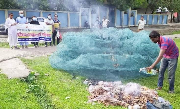 মাগুরার শালিখায় মৎস্য সম্পদ উন্নয়নে আইন বাস্তবায়ন উপলক্ষে উপজেলা প্রশাসনের পরিচালনায় ও উপজেলা মৎস্য অধিদপ্তরের বাস্তবায়নে বছরব্যাপী অভিযান ও মোবাইল কোর্ট পরিচালনা করা হচ্ছে। এরই ধারাবাহিকতায় ১৮ টি চায়না দোয়ারী ও ১২০ পিস অবৈধ কারেন্ট জাল (২৫ হাজার মিটার) জব্দ করা হয় যা আজ সোমবার (৬ আগস্ট) দুপুরে উপজেলা সদর আড়পাড়া সরকারি আইডিয়াল হাই স্কুল মাঠ প্রাঙ্গনে জনসম্মুখে আগুনে পুড়িয়ে ভস্ম করা হয়। যার আনুমানিক বাজার মূল্য দুই লক্ষাধিক টাকা। এসময় উপস্থিত ছিলেন উপজেলা নির্বাহী কর্মকর্তা গোলাম মো: বাতেন, উপজেলা মৎস্য কর্মকর্তা শারমিন আক্তার, উপজেলা মৎস্য সম্প্রসারণ কর্মকর্তা মু: সেকেন্দার আলী, উপজেলা ক্ষেত্র সহকারী সোহেল রানা ও খন্দকার এজাজ হোসেন প্রমুখ। উপজেলা নির্বাহী কর্মকর্তা গোলাম মোঃ বাতেন বলেন, দেশীয় মাছের উৎপাদন বৃদ্ধি এবং মৎস্য দস্যু দমন করতে আমাদের এ অভিযান যা ভবিষ্যতেও অব্যাহত থাকবে। পাশাপাশি তিনি সবাইকে অবৈধ মৎস্য সরঞ্জাম দিয়ে মাছ শিকার না করার আহ্বান জানান।