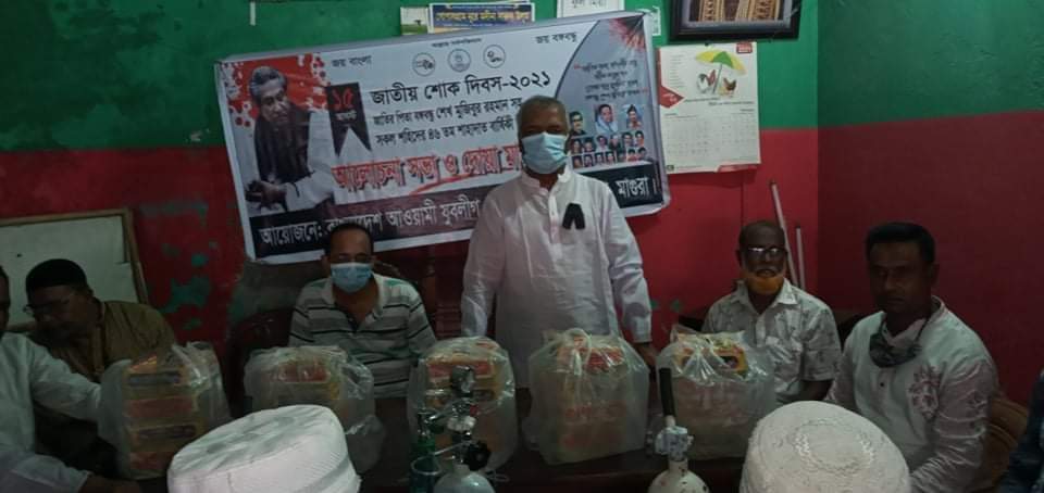 মাগুরার শালিখায় জাতির জনক বঙ্গবন্ধু শেখ মুজিবুর রহমানের ৪৬ তম শাহাদাত বার্ষিকী ২০২১ উপলক্ষে শালিখা উপজেলা আওয়ামী যুবলীগের উদ্যোগে আলোচনা সভা ও দোয়া মাহফিল অনুষ্ঠিত হয়।আজ(সোমবার) বেলা ১২.৩০ টায় শালিখা উপজেলা আওয়ামী লীগ কার্যালয়ে উপজেলা আওয়ামী যুবলীগের আহবায়ক মোঃ মুজিবুর রহমানের সভাপতিত্বে অনুষ্ঠিত আলোচনা সভা ও দোয়া মাহফিলে বক্তব্য রাখেন শালিখা উপজেলা আওয়ামী লীগের সভাপতি এডভোকেট শ্যামল কুমার দে, ধনেশ্বরগাতী ইউপি চেয়ারম্যান বিমলেন্দু শিকদার, শালিখা উপজেলা পরিষদের ভাইস চেয়ারম্যান উপজেলা আওয়ামী লীগের সাংগঠনিক সম্পাদক মোঃ রেজাউল ইসলাম, মহিলা ভাইস চেয়ারম্যান জেসমিন আক্তার শাবানা,উপজেলা ছাত্রলীগের সাধারণ সম্পাদক জাবেরুল ইসলাম সাগর, শালিখা উপজেলার সাত