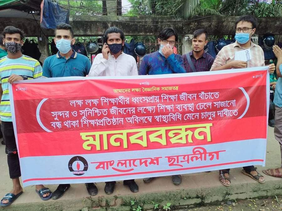 সুন্দর ও সুনিশ্চিত জীবনের লক্ষ্যে শিক্ষা ব্যবস্থা ঢেলে সাজানো, বন্ধ থাকা শিক্ষাপ্রতিষ্ঠান অবিলম্বে স্বাস্থ্যবিধি মেনে চালুর দাবী জানিয়ে মানববন্ধন এর আয়োজন করে।