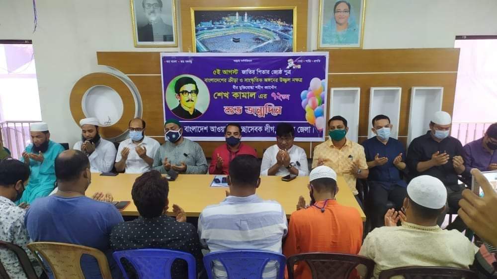 শেখ কামালের ৭২তম জন্মদিনে চাঁদপুর জেলা স্বেচ্ছা‌সেবক লী‌গের আ‌লোচনা সভা ও মিলাদ।