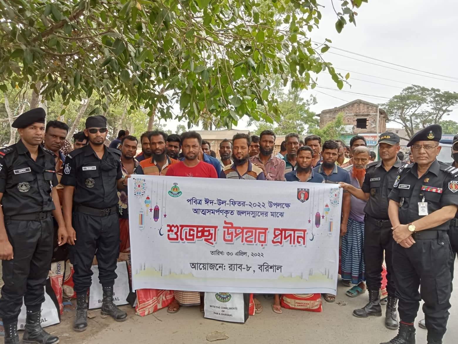 ঈদ সামগ্রী বিতরন কালে র্যাবের প থেকে জানানো হয় আত্মসমর্পণকারী জলদস্যুরা পুনর্বাসিত হয়ে স্বাভাবিক জীবন যাপন করছেন। সরকারের প থেকে আত্মসমর্পণকারী সকল জলদস্যু/বনদস্যুদের বিরুদ্ধে রজুকৃত চাঞ্চল্যকর ও গুরুতর অপরাধের (হত্যা ও ধর্ষণ) মামলা ব্যতীত অন্যান্য সকল সাধারণ মামলা সহানুভূতি সহকারে বিবেচনার বিষয়টি চলমান রয়েছে। এছাড়া র্যাব ফোর্সেস ডিজি’র পক্ষ হতে জলদস্যুদের পূর্ববর্তী দতা অনুযায়ী এবং ত্রে বিশেষ নতুন করে সরকারি বিভিন্ন প্রশিক্ষণ কেন্দ্রের মাধ্যমে প্রশিতি করে নতুন নতুন কর্মসংস্থানের ব্যবস্থা করা হয়েছে এবং বিভিন্ন সময়ে আর্থিক সহায়তা অব্যাহত রাখা হয়েছে।