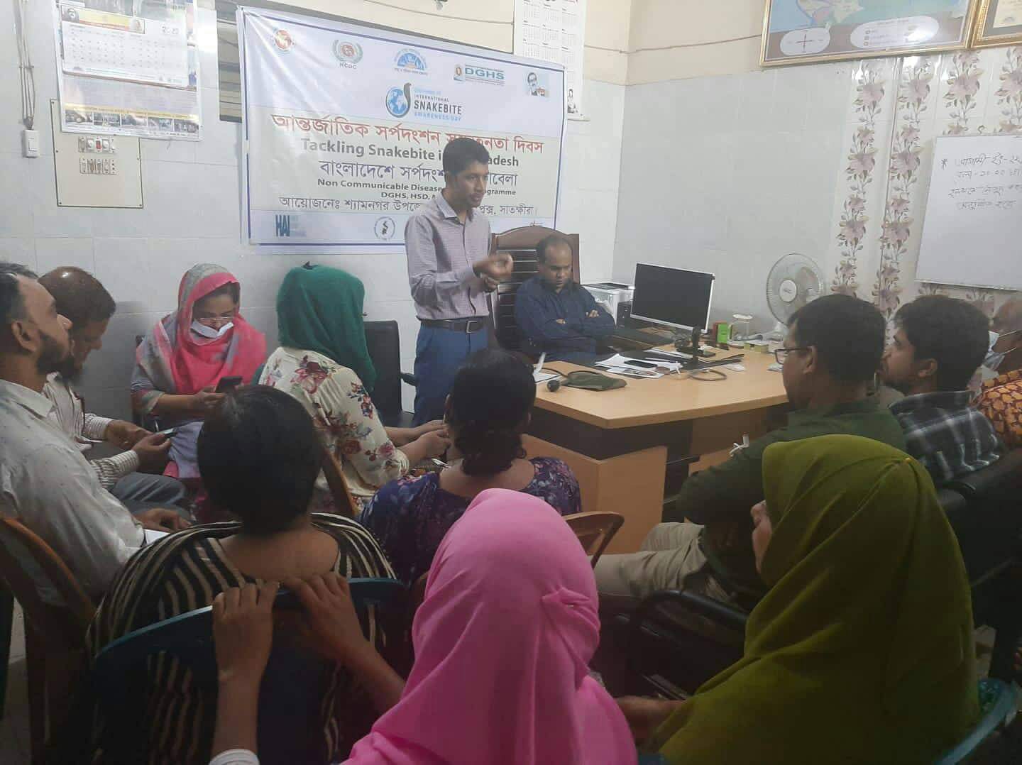 উপজেলা স্বাস্থ্য ও পরিবার পরিকল্পনা কর্মকর্তা ডাঃ মোঃ জিয়াউর রহমানের সভাপতিত্বে আলোচনাসভায় বক্তব্য রাখেন উপজেলা স্বাস্থ্য কমপ্লেক্সের মেডিকেল অফিসার ডাঃ মাকদুম জাহান রানা ও ডাঃ ফাতেমা ইদ্রিজ ইভা। সভায় সর্পদংশনে আহত রোগীদের দ্রুত হাসপাতালে নিয়ে আসা সহ বিভিন্ন বিষয়ে আলোচনা করা হয়।
