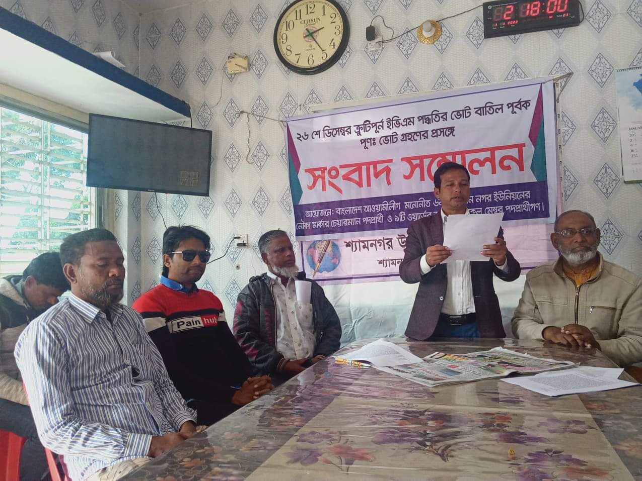 সংবাদ সম্মেলনে লিখিত বক্তব্য পাঠ করেন চতুর্থধাপে অনুষ্ঠিত ২৬ ডিসেম্বর ইউনিয়ন পরিষদ নির্বাচনে রমজাননগর ইউনিয়নের নৌকা প্রতিকের প্রার্থী মোঃ শাহানুর আলম। তিনি লিখিত বক্তব্যে বলেন ইভিএমে নৌকা প্রতিকের বাটুনে চাপ দিলে অন্য প্রতিক ভেসে আসে কখনও কখনও। এছাড়া চাঁদখালী কেন্দ্রে প্রথমদিকে মোরগ প্রতিকের বাটনে চাপ দিলে অন্য আরএকটা প্রতিক ভেসে আসে। এ বিষয় কতৃপক্ষকে অবহিত করলে যেনতেনভাবে মেশিন ঠিক করে কিছু পরে ভোট গ্রহণ শুরু করা হয়।এ ছাড়া অন্যান্য অভিযোগ করেন। তিনি বলেন অত্র এলাকার অনেক ভোটারের ইভিএমে ভোট দেওয়ারমত অভিজ্ঞতা ছিলনা। সে কারণে ইভিএমে ভোট গ্রহণ ত্রুটি পূর্ণ থাকায় ব্যালট পেপার দিয়ে পুনঃ ভোট গ্রহনের জন্য যথাযথ কতৃপক্ষের দৃষ্টি আকর্ষণে সংবাদ সম্মেলনের মাধ্যমে আকুল আবেদন জানান।