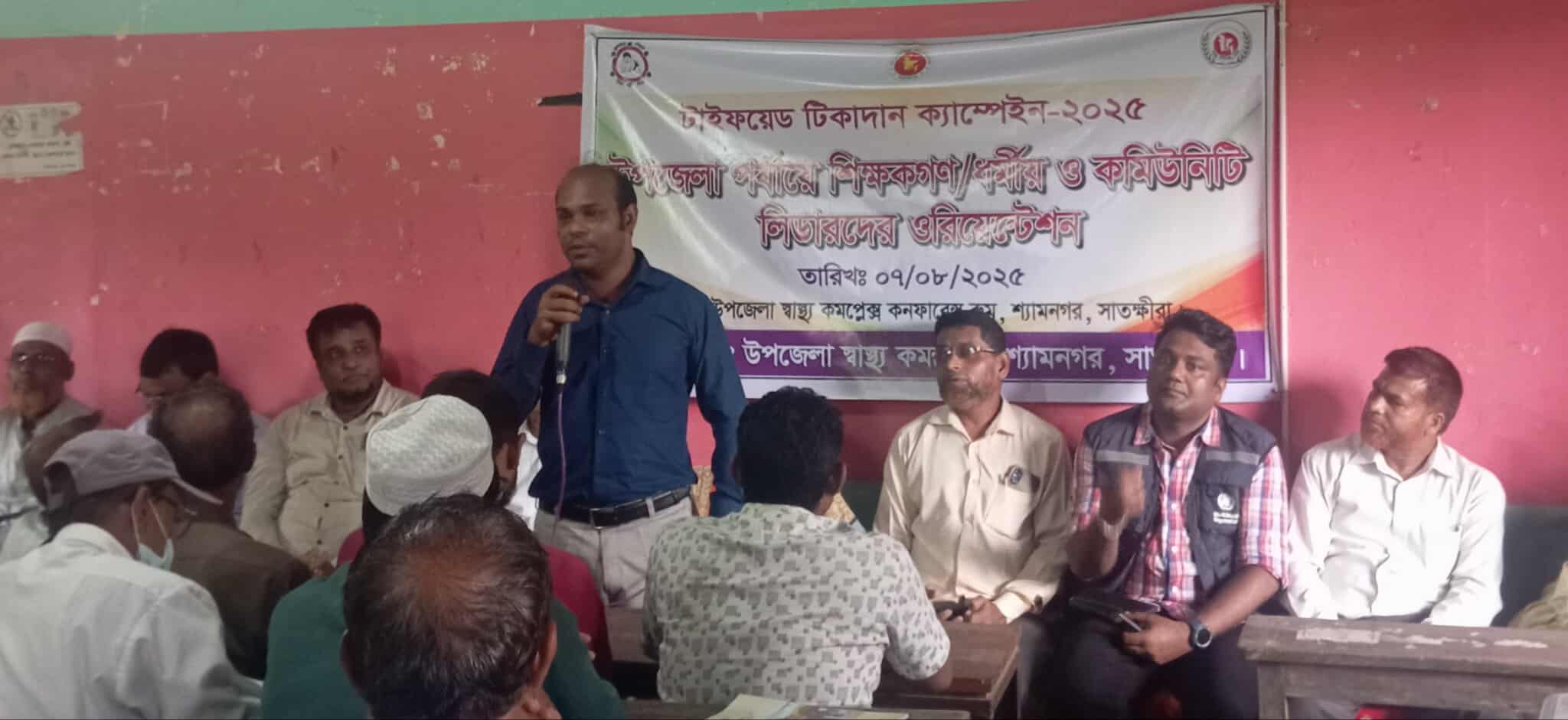 ছবি- শ্যামনগরে উপজেলা পর্যায়ে টাইফয়েড টিকাদান ক্যাম্পেইনে বক্তব্য রাখছেন উপজেলা স্বাস্থ্য ও পরিবার পরিকল্পনা কর্মকর্তা ডাঃ জিয়াউর রহমান।