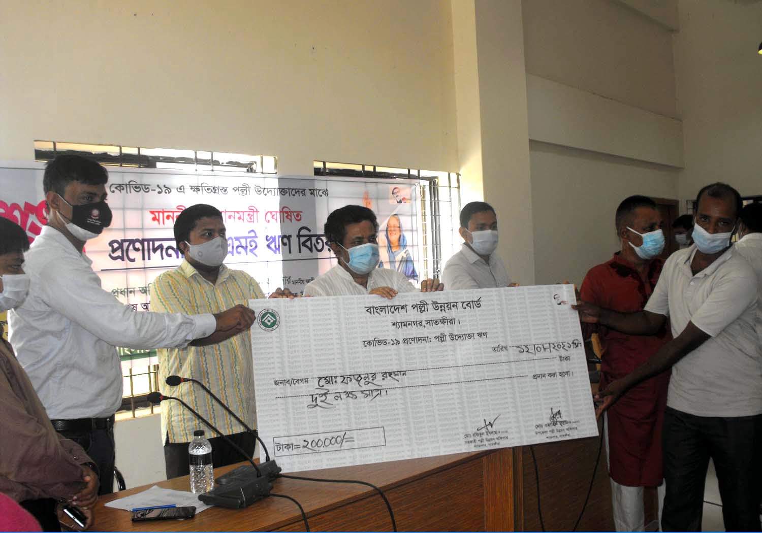 সাতক্ষীরার শ্যামনগরে কোভিড ১৯ এ ক্ষতিগ্রস্থ পল্লী উদ্যোক্তাদের মধ্যে বি আর ডিবির আয়োজনে ৪৩জনকে ৬৫ লাখ টাকা ঋণ প্রদান করা হয়েছে।বৃহস্পতিবার উপজেলা পরিষদ হল রুমে শ্যামনগর পল্লী উন্নয়ন বোর্ড কর্তৃককোভিড ১৯ এ ক্ষতিগ্রস্থ পল্লী উদ্যোক্তাদের মধ্যে ৪৩ জনকে ৬৫ লাখ টাকা ঋণপ্রদান করা হয়েছে। শ্যামনগর উপজেলা নির্বাহী অফিসার আ.ন.ম. আবুজর গিফারীরসভাপতিত্বে প্রধানমন্ত্রী ঘোষিত ঋণ বিতরণ অনুষ্ঠানে প্রধান অতিথিরবক্তব্য সহ ঋণ বিতরণ করেন সংসদ সদস্য এস.এম. জগলুল হায়দার।প্রধান অতিথি বক্তব্য বলেন, প্রধানমন্ত্রী নির্বাচনী অঙ্গীকার অনুযায়ীবি,আর ডিবির মাধ্যমে পল্লীর জনগণের ভাগ্য উন্নয়নের বিশেষ কর্ম পরিকল্পনা
