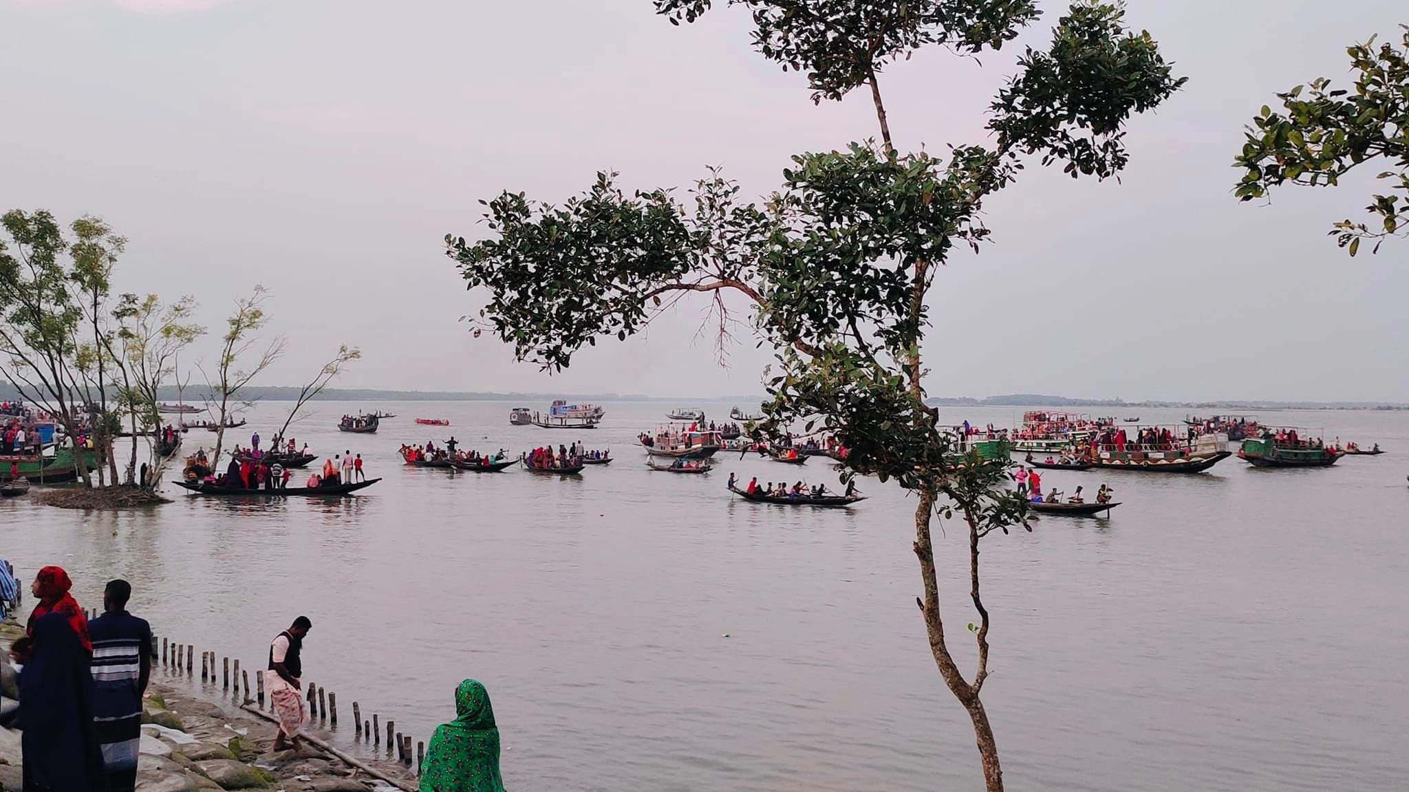 ছবি- শ্যামনগরে খোলপেটুয়া নদীতে নৌকা বাইচ প্রতিযোগিতা।