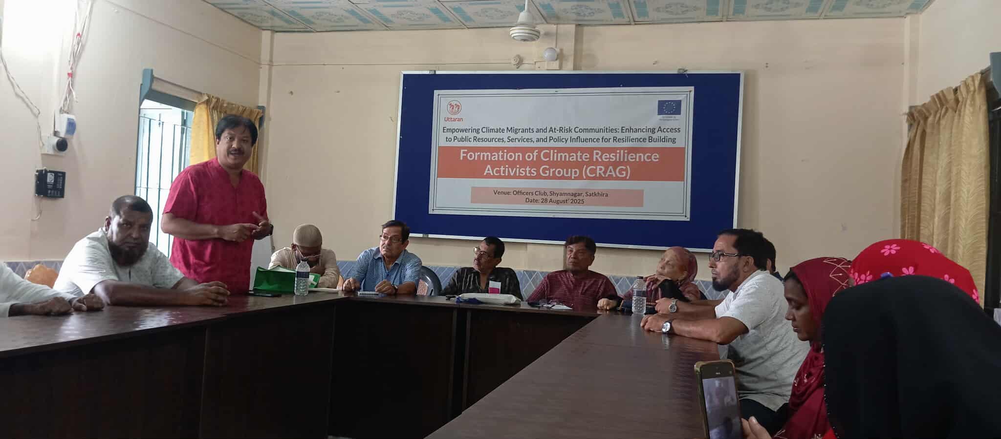 বেসরকারী সংস্থা উত্তরণের আয়োজনে মুক্তিযোদ্ধা নজরুল ইসলামের সভাপতিত্বে ও উত্তরণ প্রধান কার্যালয়ের কর্মকর্তা মনিরুজ্জামান জমাদ্দারের সঞ্চালনায় সভায় সর্বসম্মতিক্রমে উপজেলা জলবায়ু সহনশীলতা আন্দোলনকারী দল গঠন(সিআরএজি) করা হয়।