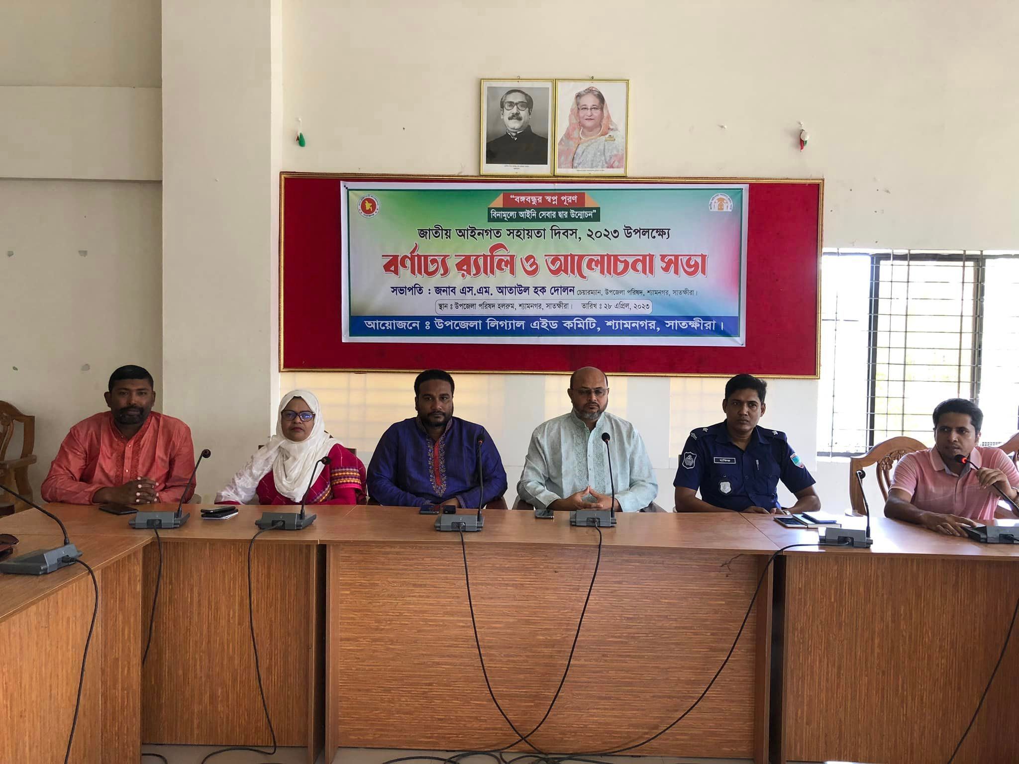 অপরদিকে শ্যামনগর সদর পরিষদের(পৌরসভা) আয়োজনে শ্যামনগর ইউনিয়ন পরিষদ হল রুমে জাতীয় আইনগত সহায়তা দিবস পালিত হয়। সদর ইউপি চেয়ারম্যান ও পিপি এ্যাড. জহুরুল হায়দার বাবুর সভাপতিত্বে আলোচনাসভায় বক্তব্য রাখেন বীর মুক্তিযোদ্ধা মাষ্টার নজরুল ইসলাম, অধ্যক্ষ জুলফিকার আল মেহেদী লিটন, প্রধান শিক্ষক আব্দুস সাত্তার প্রমুখ।