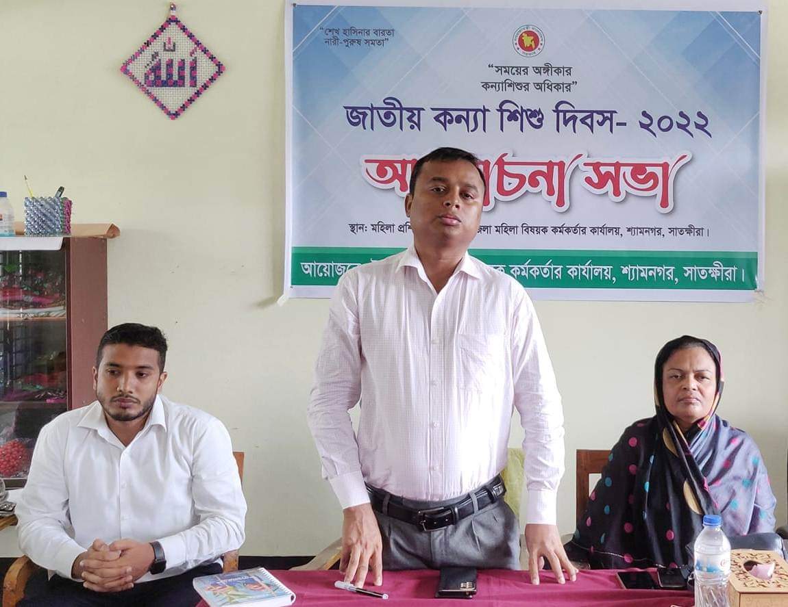 ছবি- শ্যামনগরে জাতীয় কন্যা শিশু দিবসের আলোচনাসভায় প্রধান অতিথির বক্তব্য রাখছেন ইউএনও মোঃ আক্তার হোসেন।