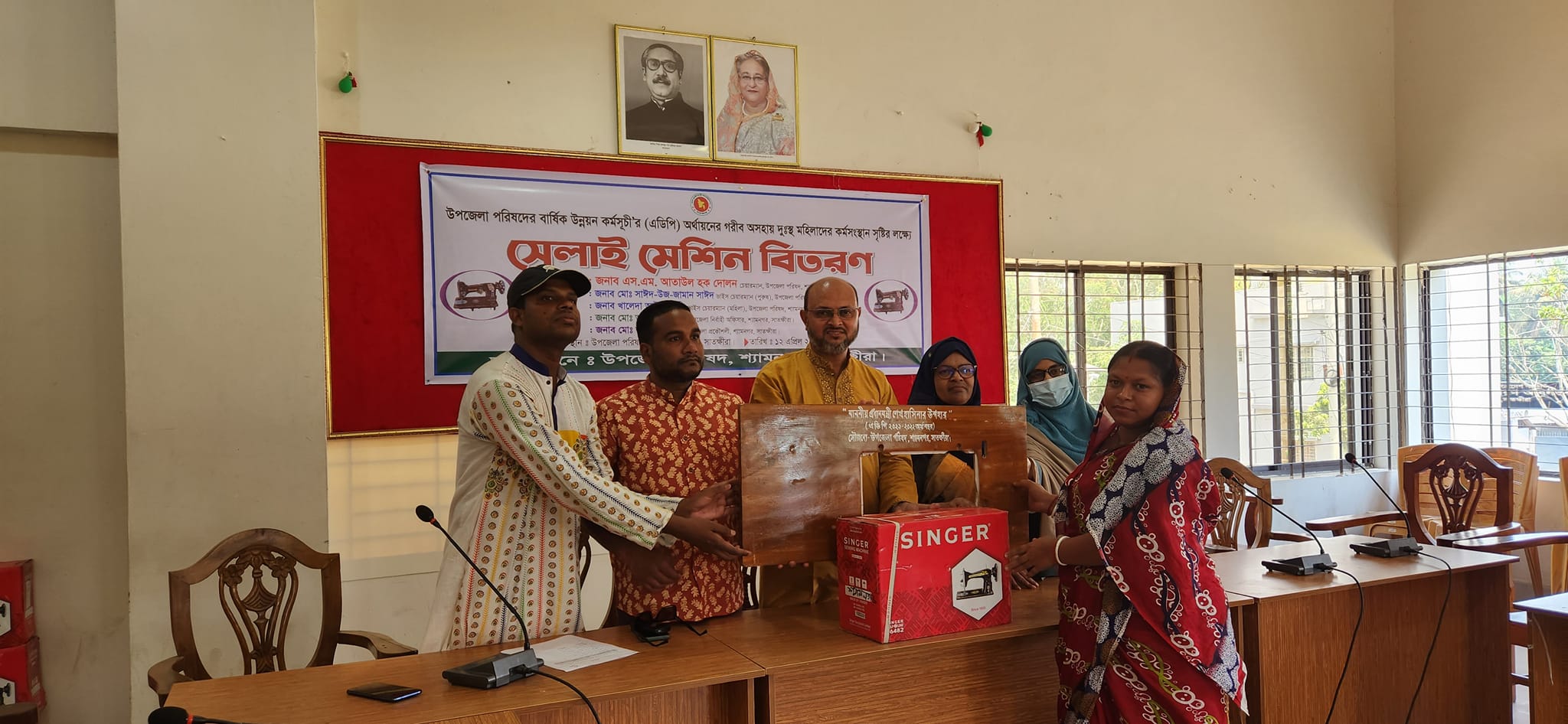সাতক্ষীরার শ্যামনগর উপজেলা পরিষদের আয়োজনে উপজেলা পরিষদ হল রুমে উপজেলা পরিষদের বার্ষিক উন্নয়ন কর্মসূচির অর্থায়নে গরীব অসহায় দুঃস্থ মহিলাদের কর্মসংস্থান সৃষ্টির লক্ষে বুধবার সকালে সেলাই মেশিন বিতরণ করা হয়েছে।