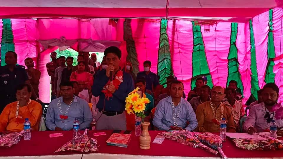 ছবি- শ্যামনগরের ভেটখালী পূর্বপাড়া মুন্ডা পল্লীর দূর্গা পূজা মন্ডপে মতবিনিময় করছেন সাতক্ষীরা জেলা প্রশাসক হুমায়ুন কবির।